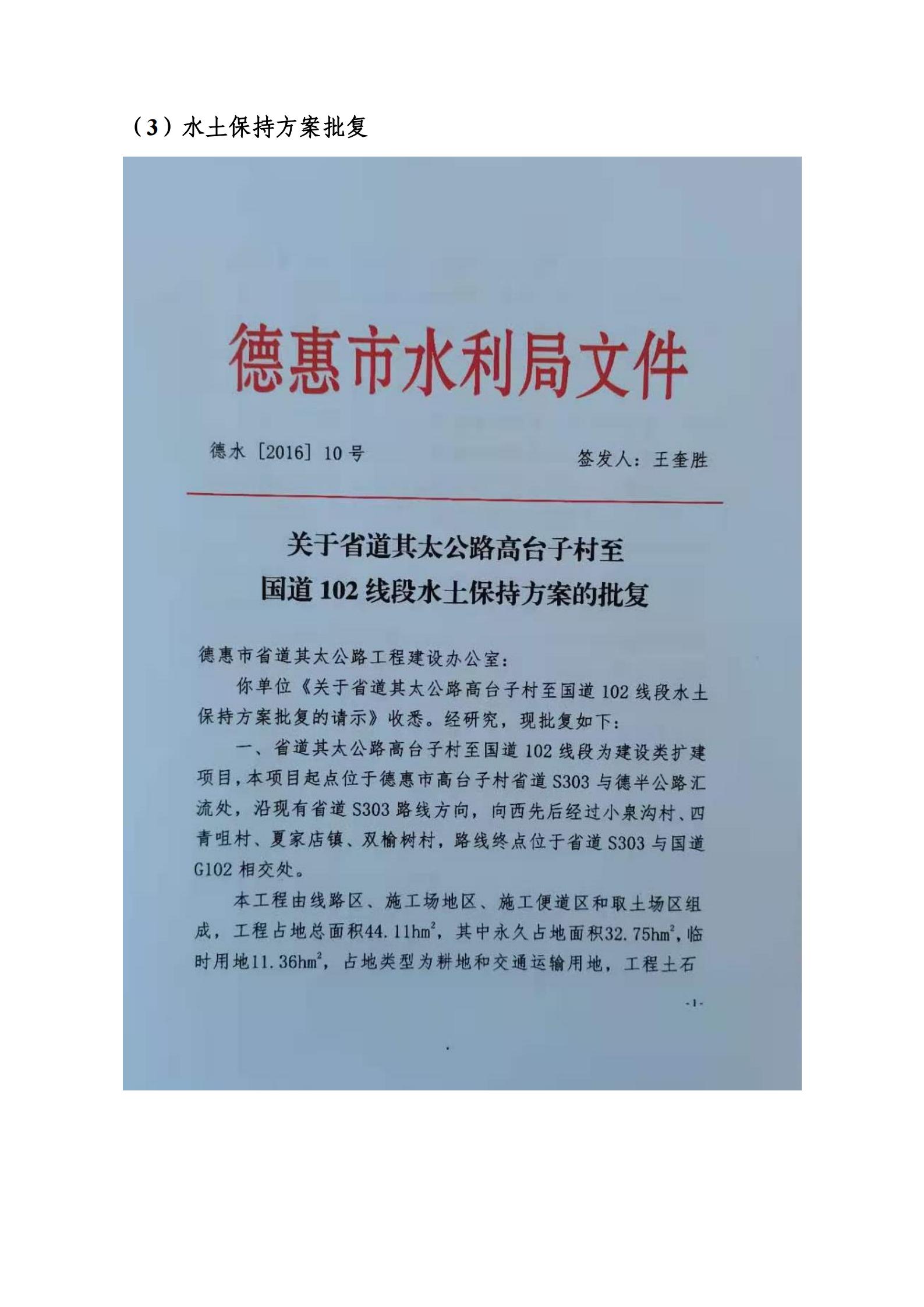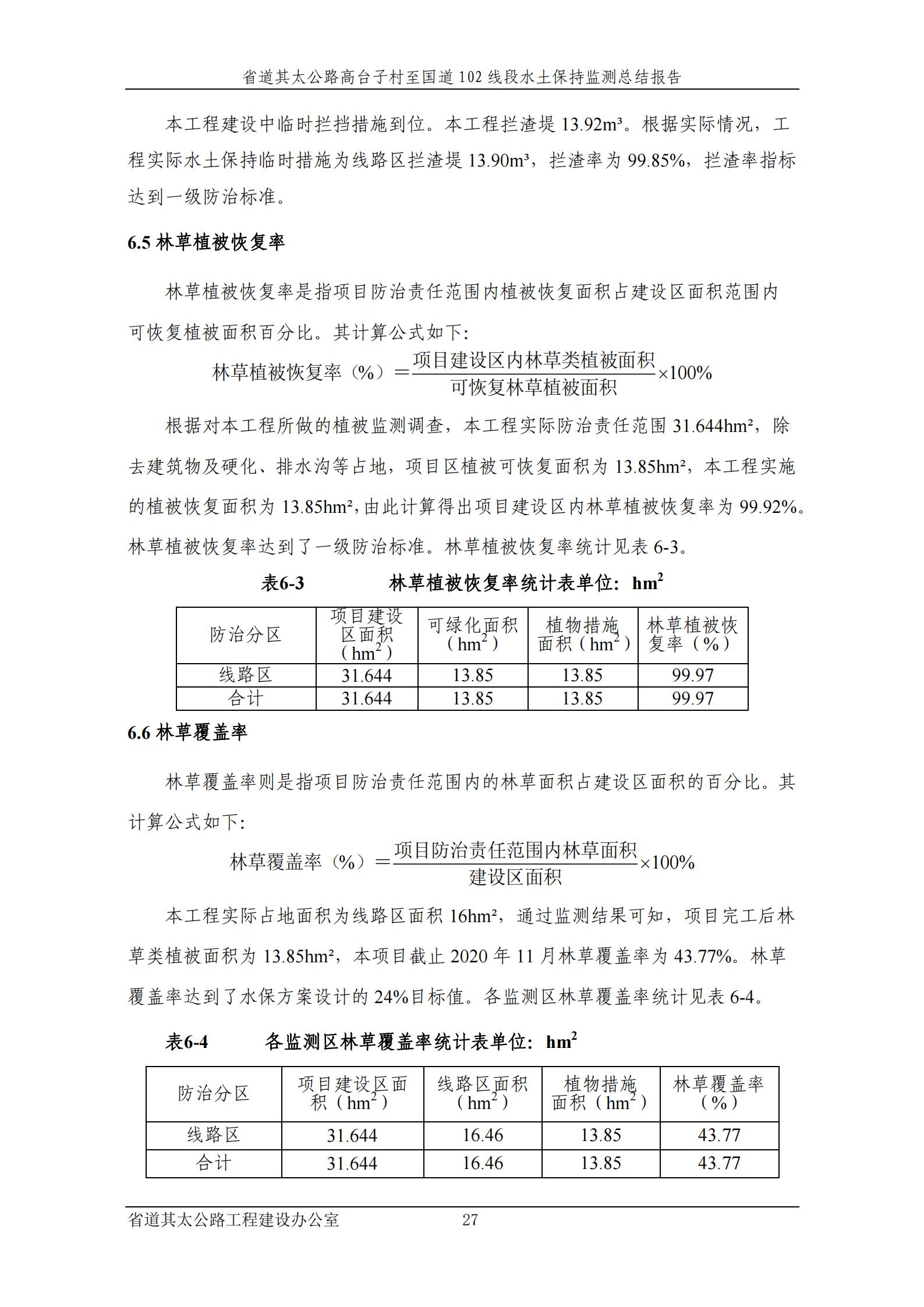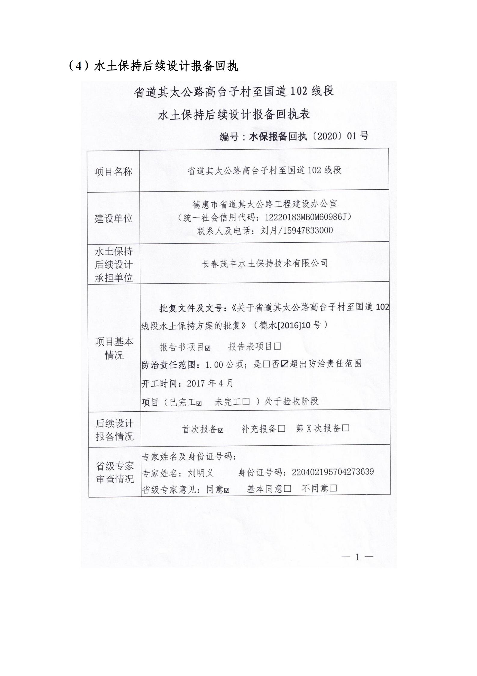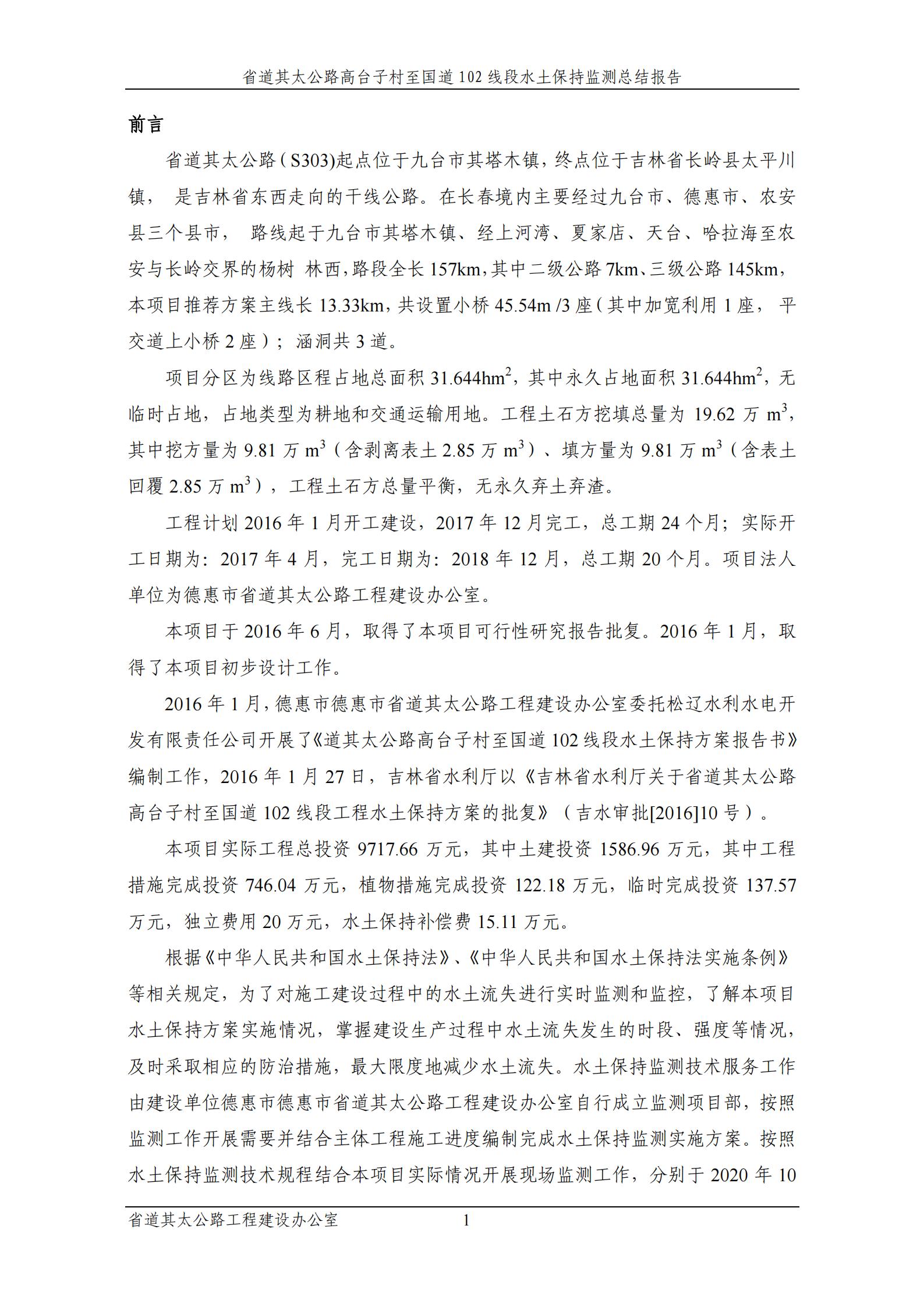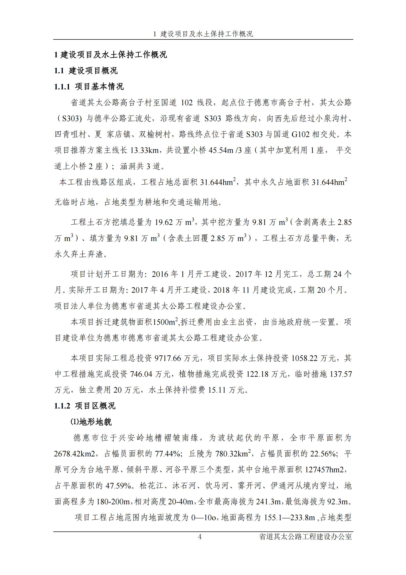 省道其太公路高台子村至国道102线段水土保持设施验收报告