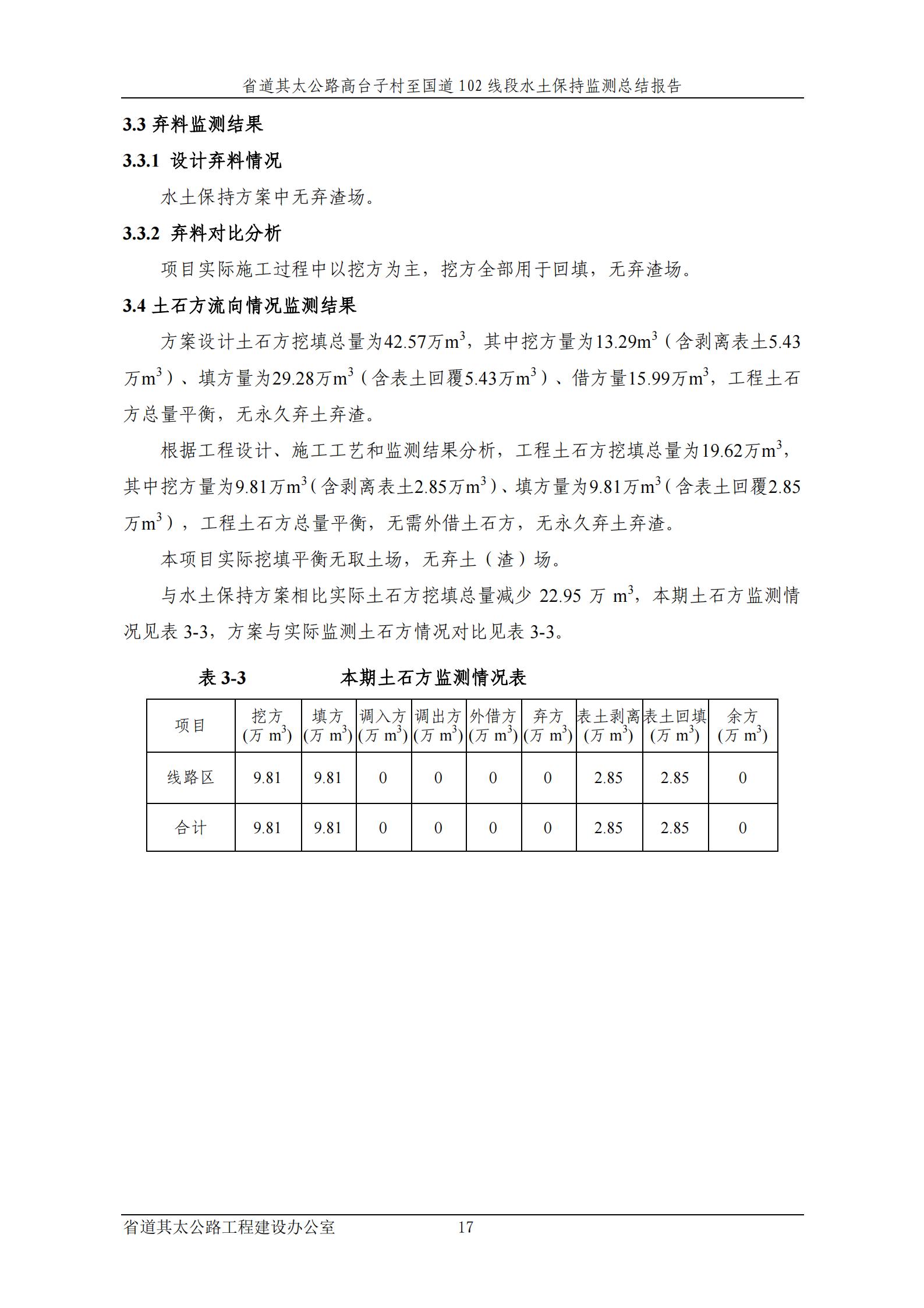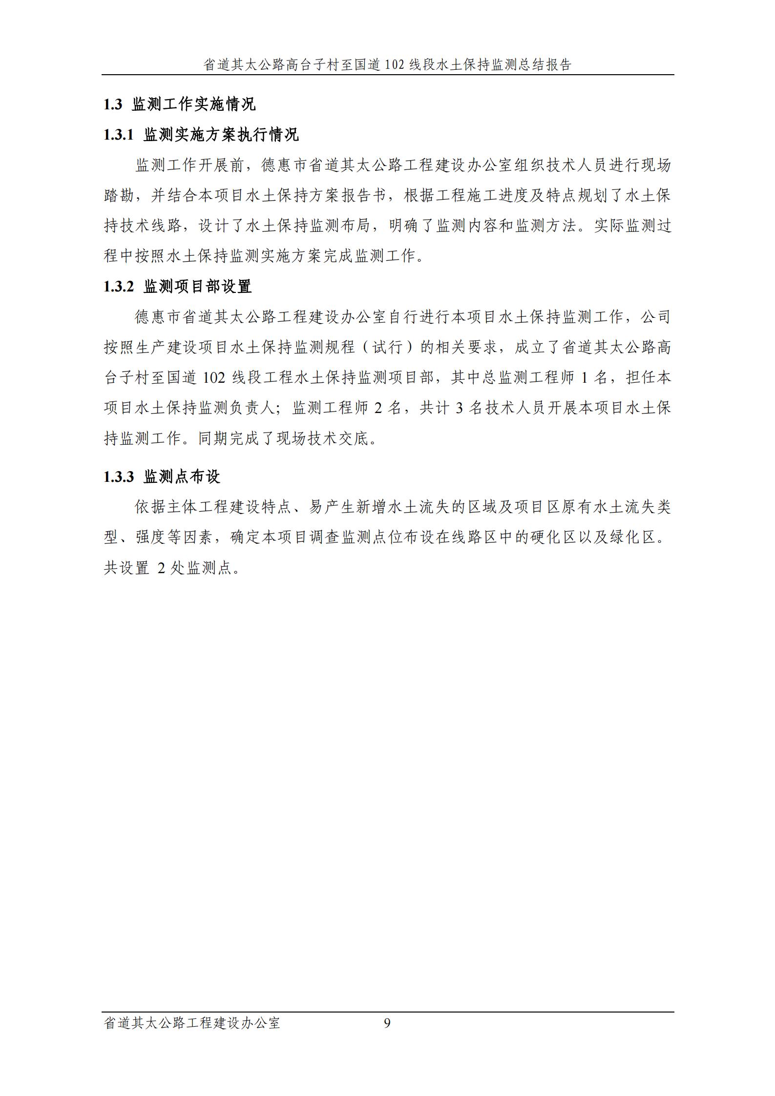 省道其太公路高台子村至国道102线段监测总结报告