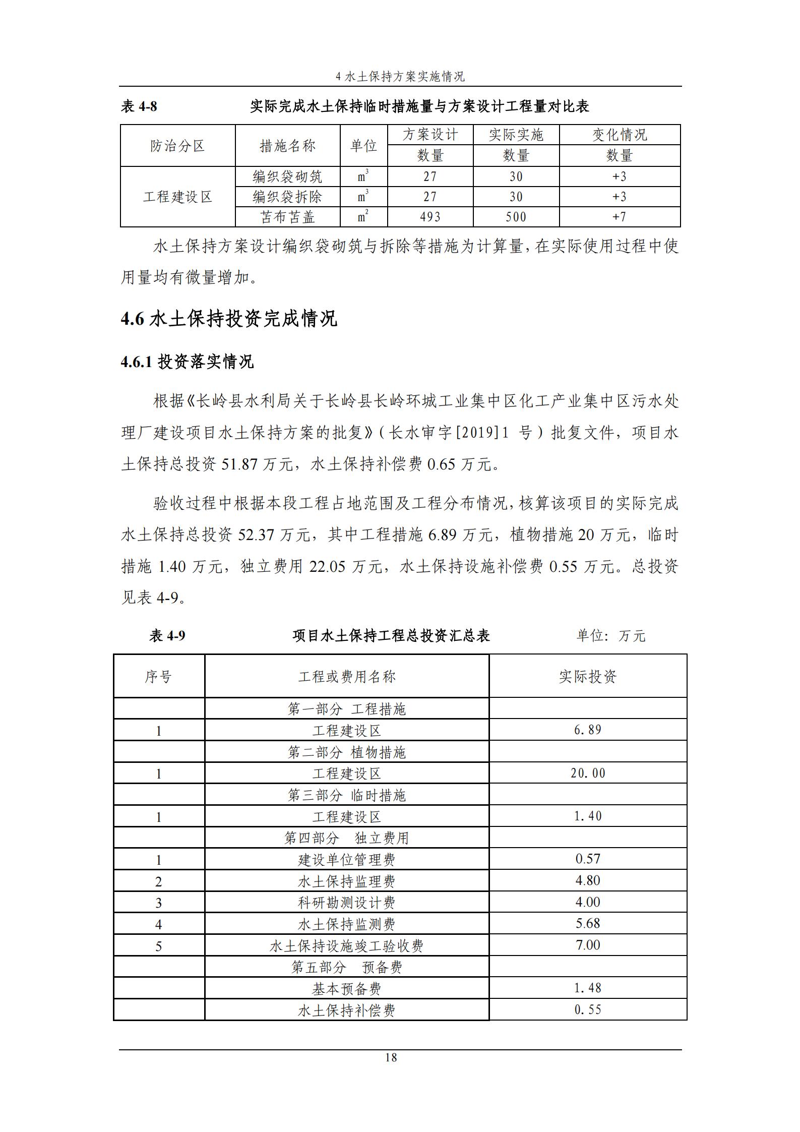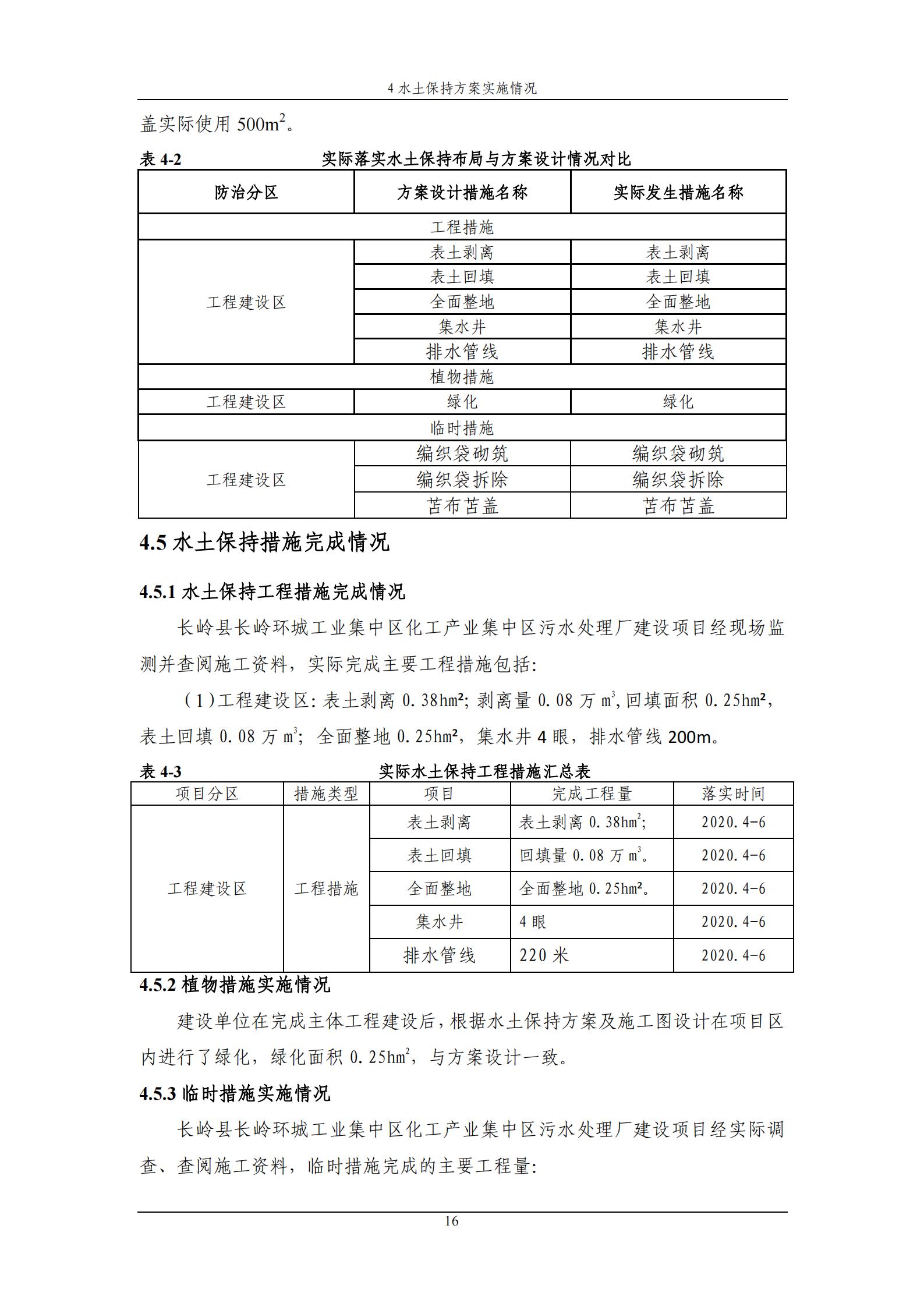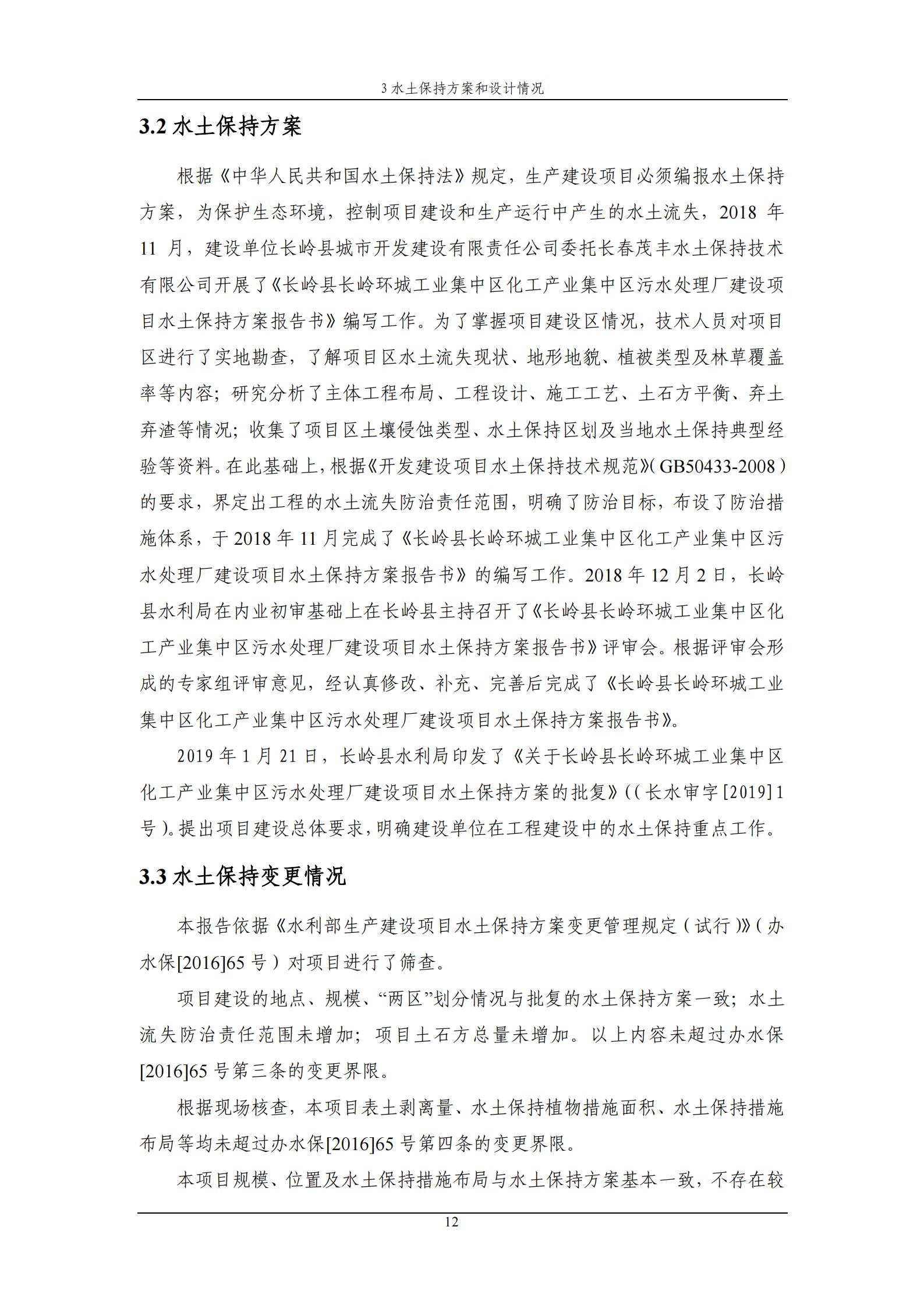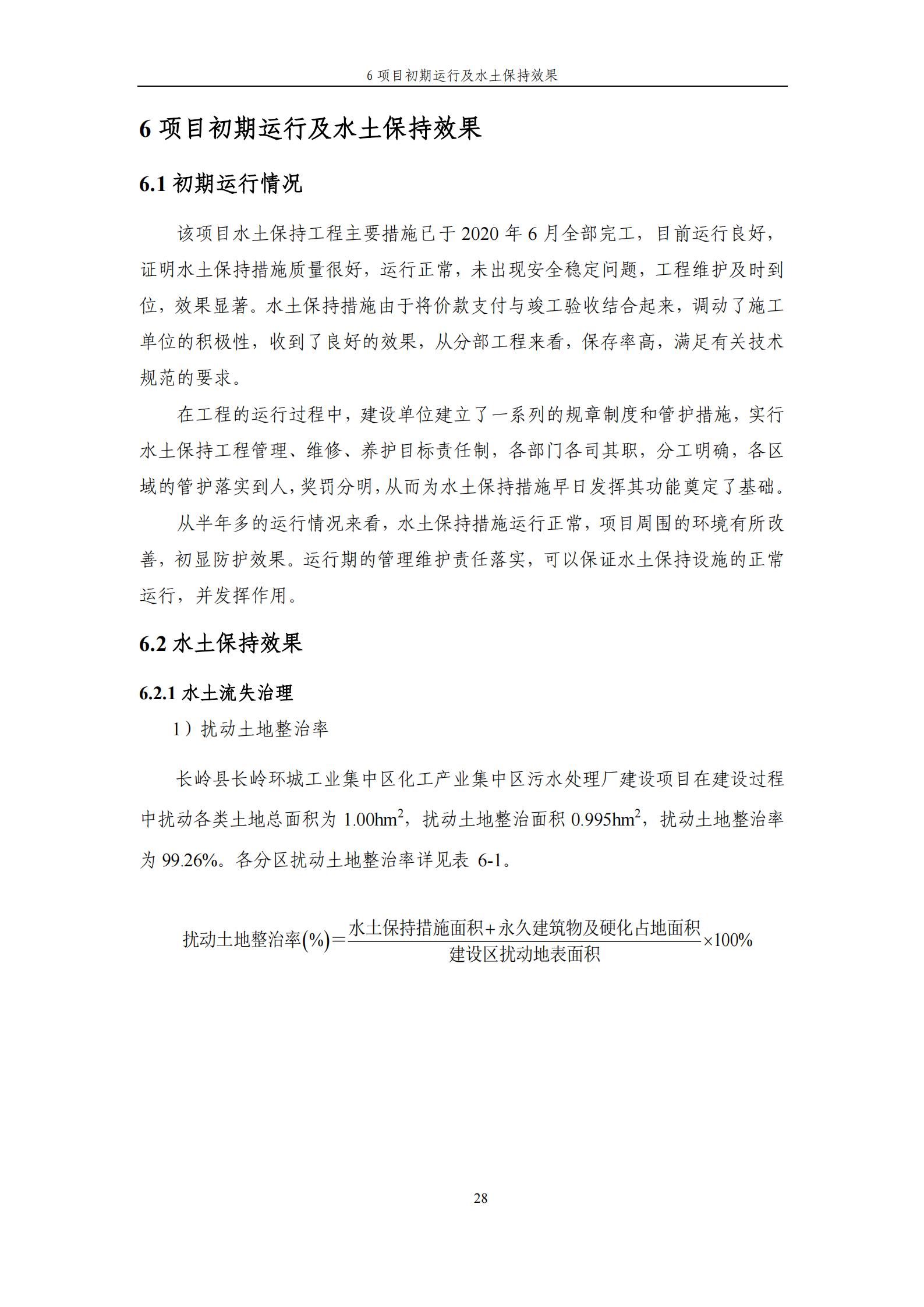 水土保持设施验收报告-长岭县长岭环城工业集中区化工产业集中区污水处理厂建设项目