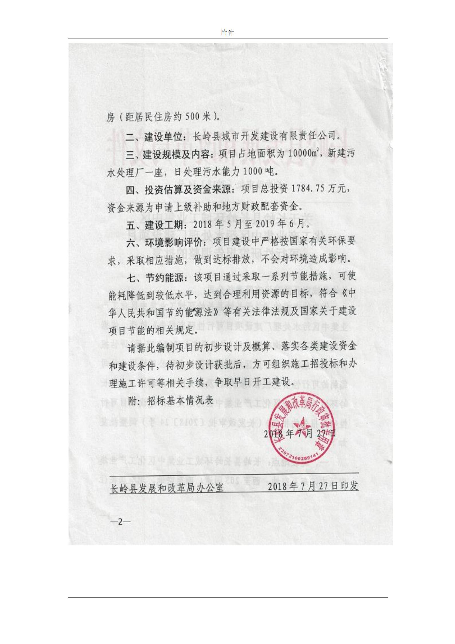 水土保持设施验收公示说明(长岭县长岭环城工业集中区化工产业集中区污水处理厂建设项目)