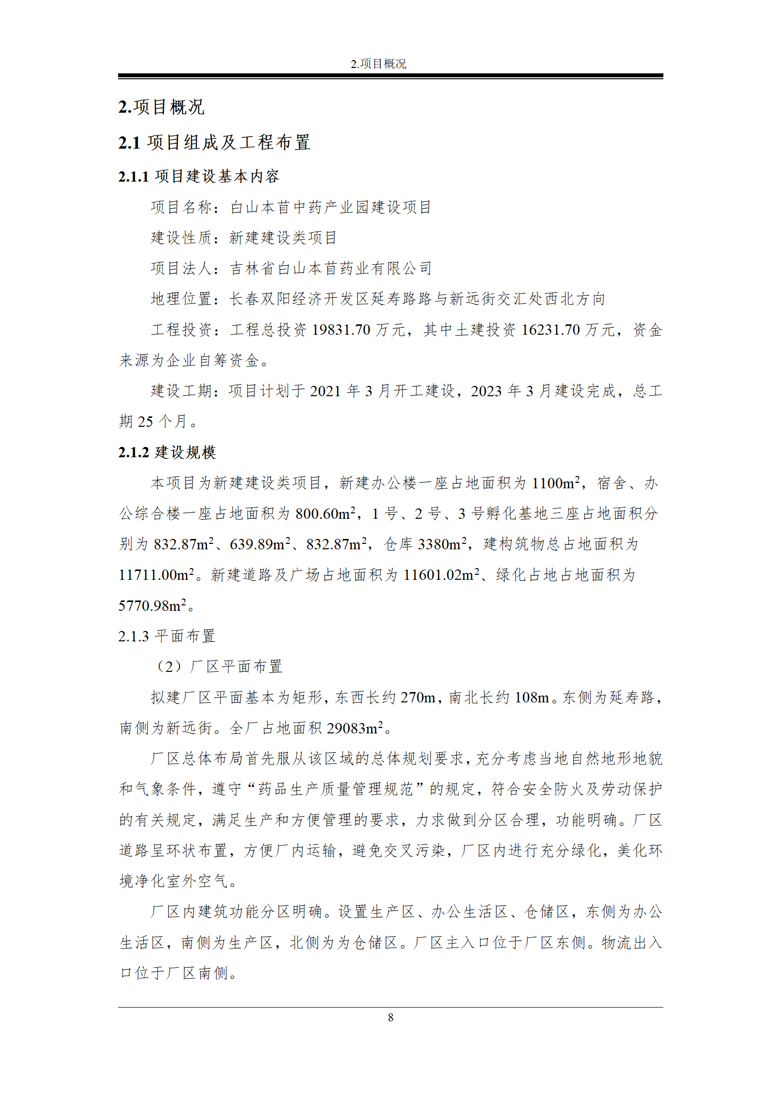 根据《吉林省水利厅关于进一步加强全省生产建设项目水土保持承诺制管理的通知》(吉水保函〔2021〕14号)对生产建设单位编制水土保持报告表的规定和要求,2021年3月吉林省白山本苜药业有限公司委托长春市齐悦水土保持技术有限公司编制了本项目的水土保持方案报告表。现将白山本苜中药产业园建设项目在长春茂丰水土保持技术有限公司http://www.changchunmaofeng.com网页予以公示。