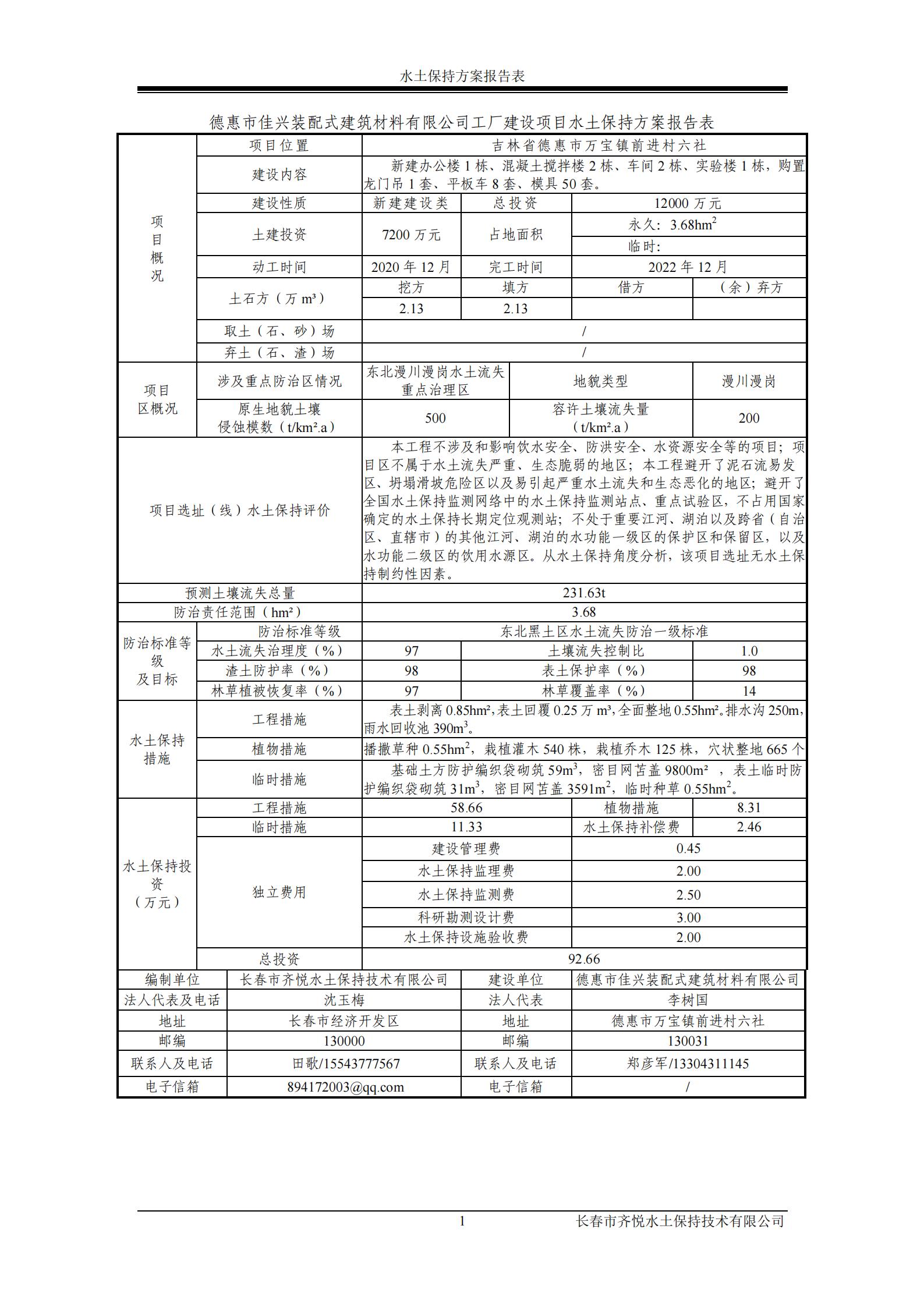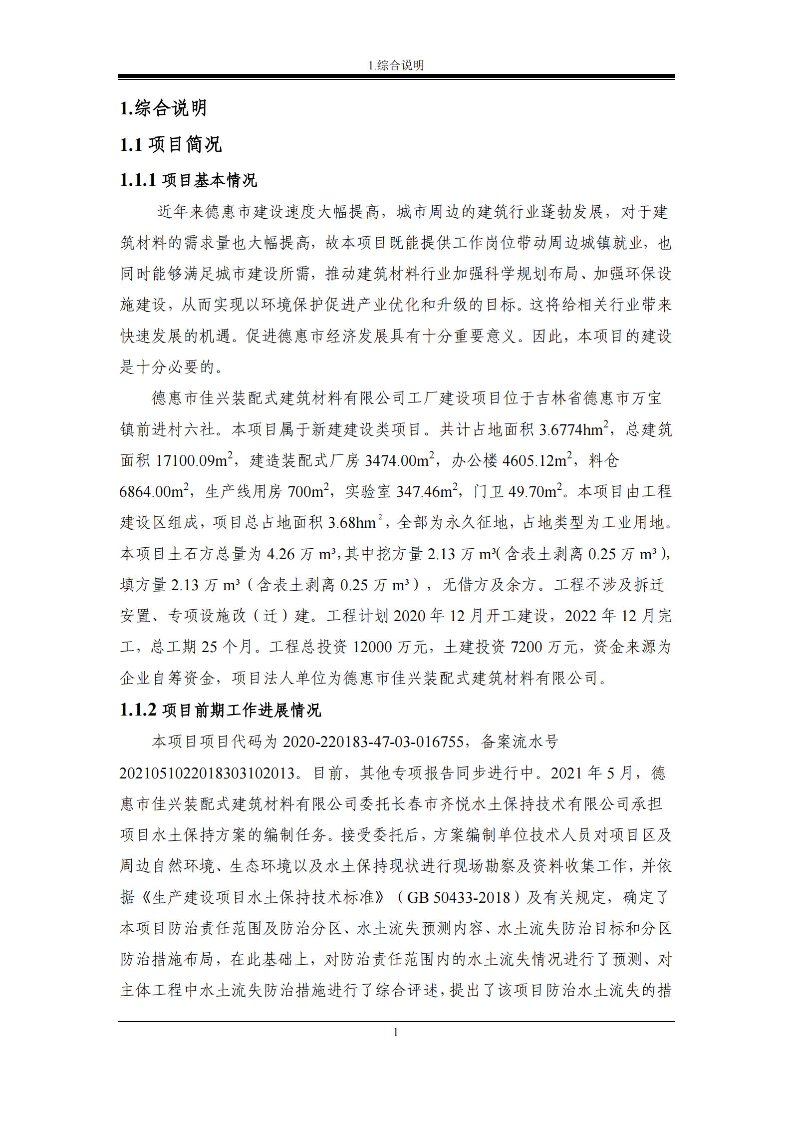 附 件:德惠市佳兴装配式建筑材料有限公司工厂建设项目水土保持方案报告表