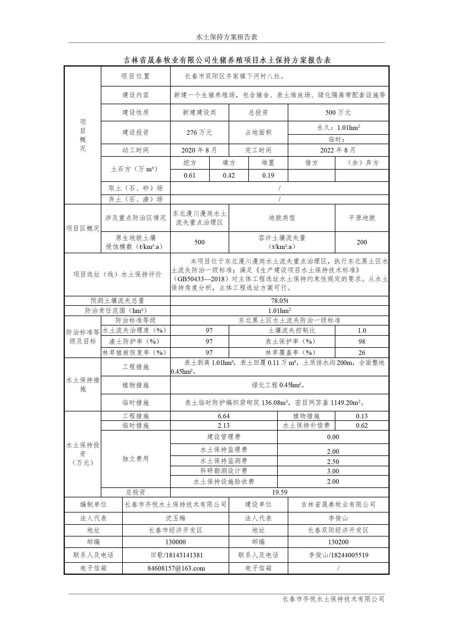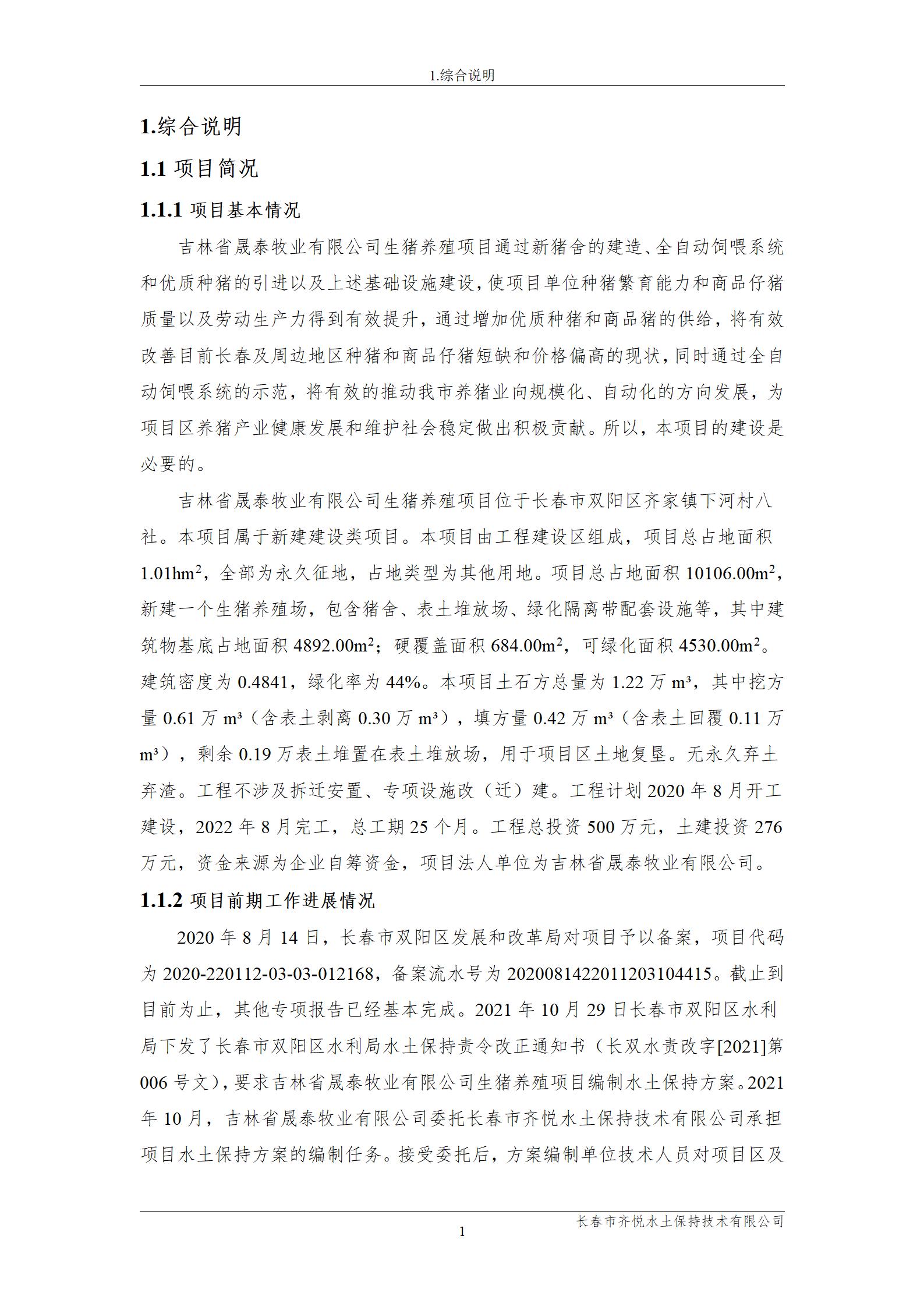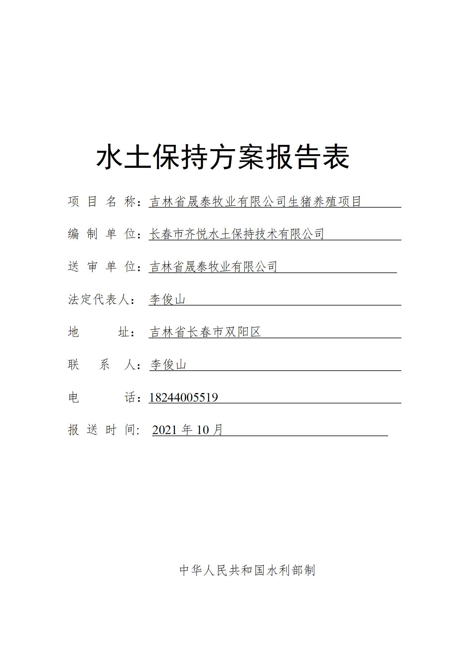 报批-吉林省晟泰牧业有限公司生猪养殖项目报告表