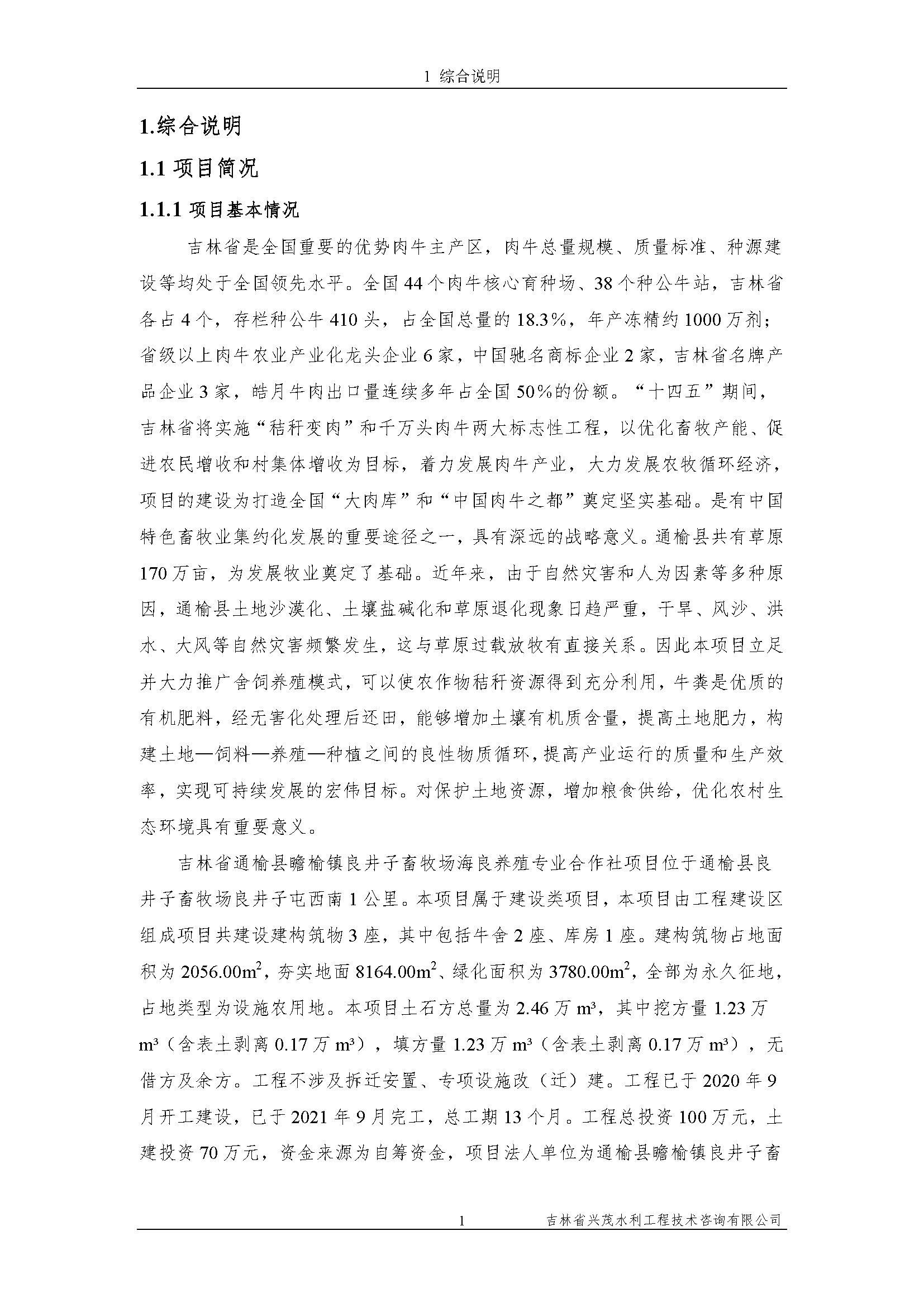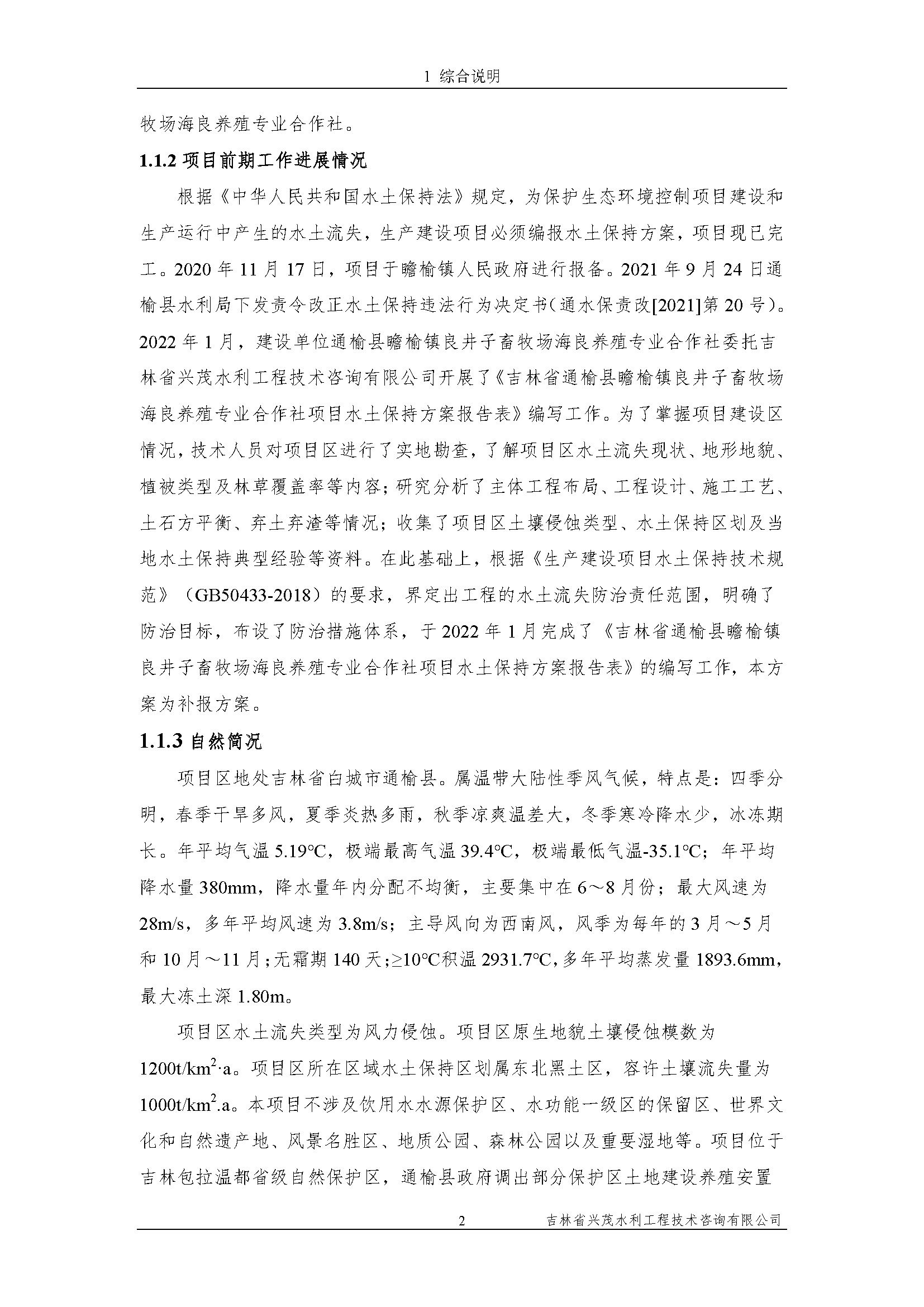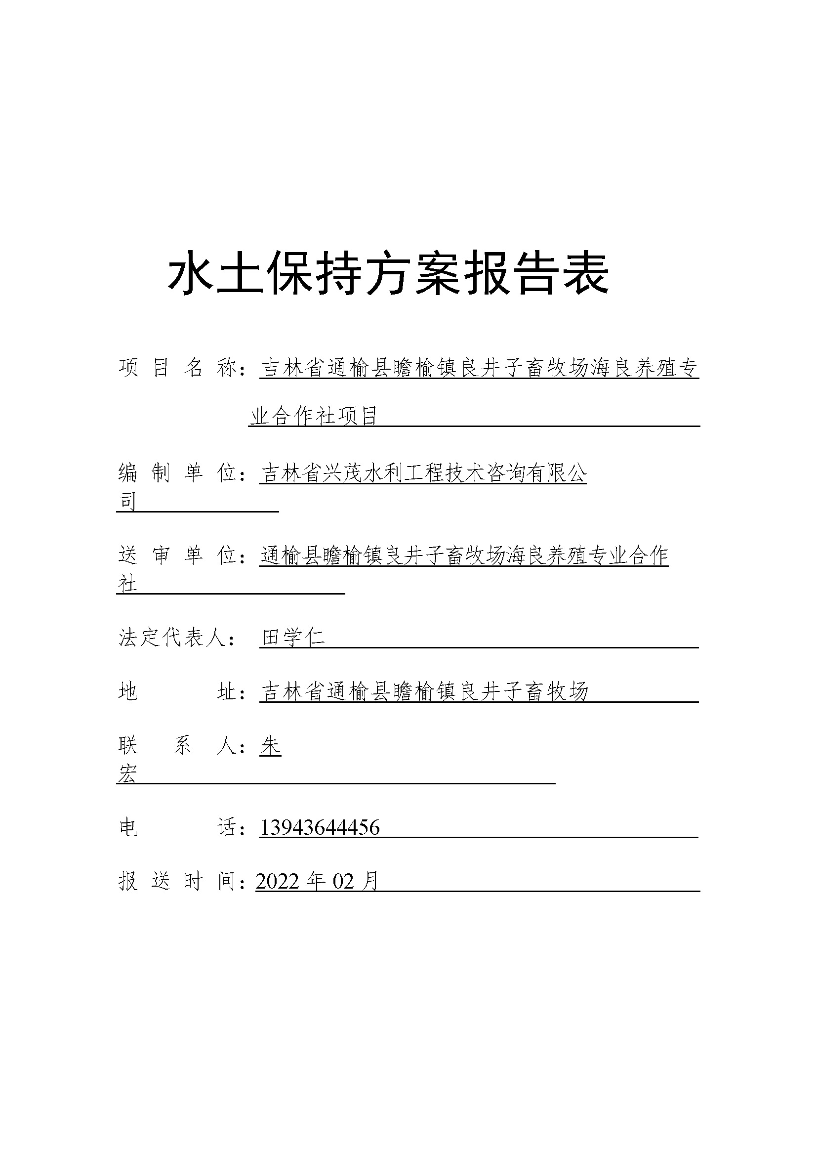 吉林省通榆县瞻榆镇良井子畜牧场海良养殖专业合作社项目水保表