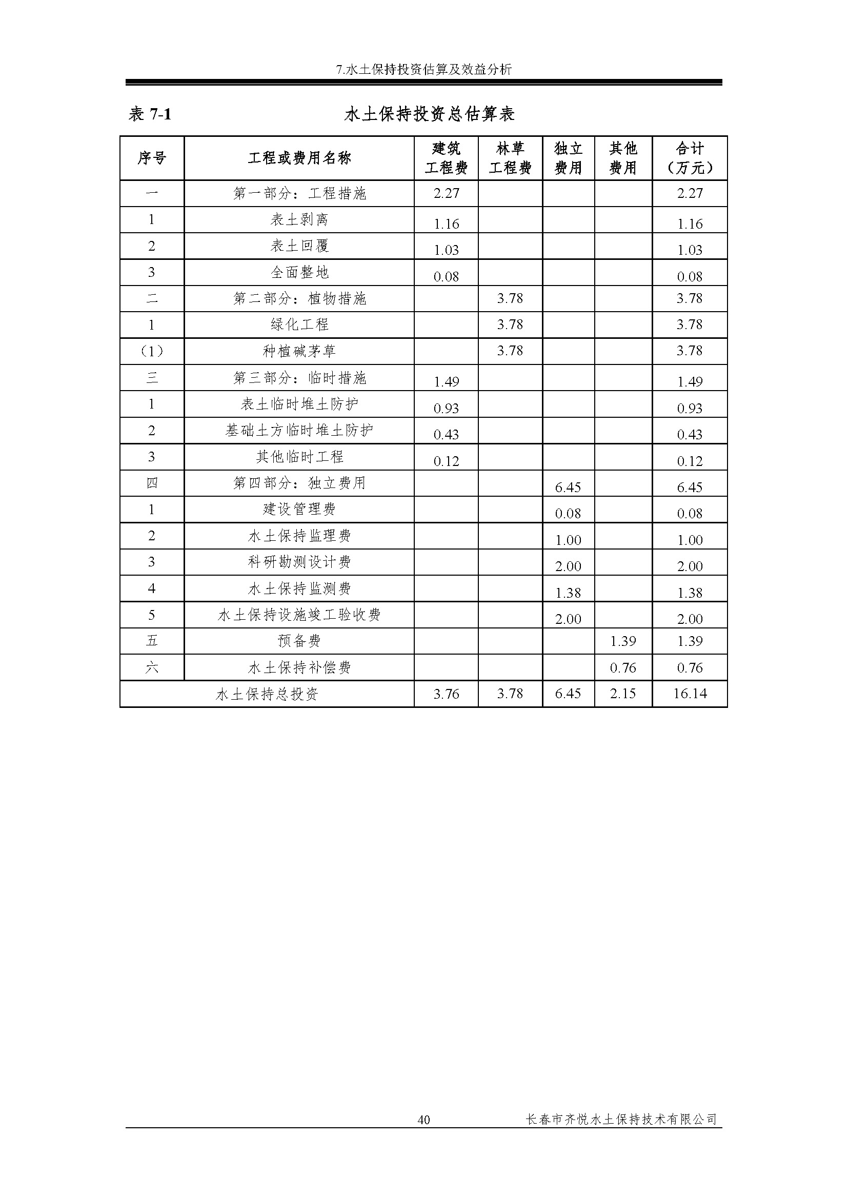 吉林省通榆县瞻榆镇良井子畜牧场李旭东养殖专业合作社项目水保表