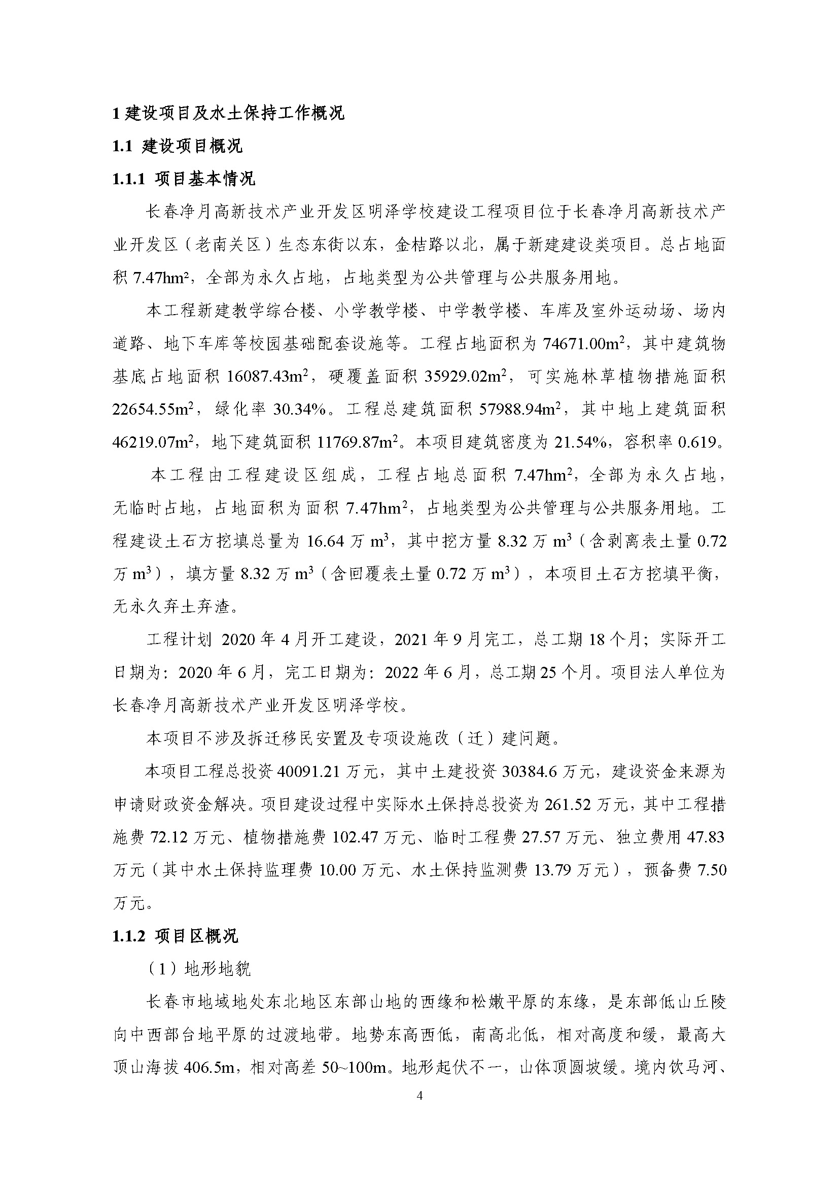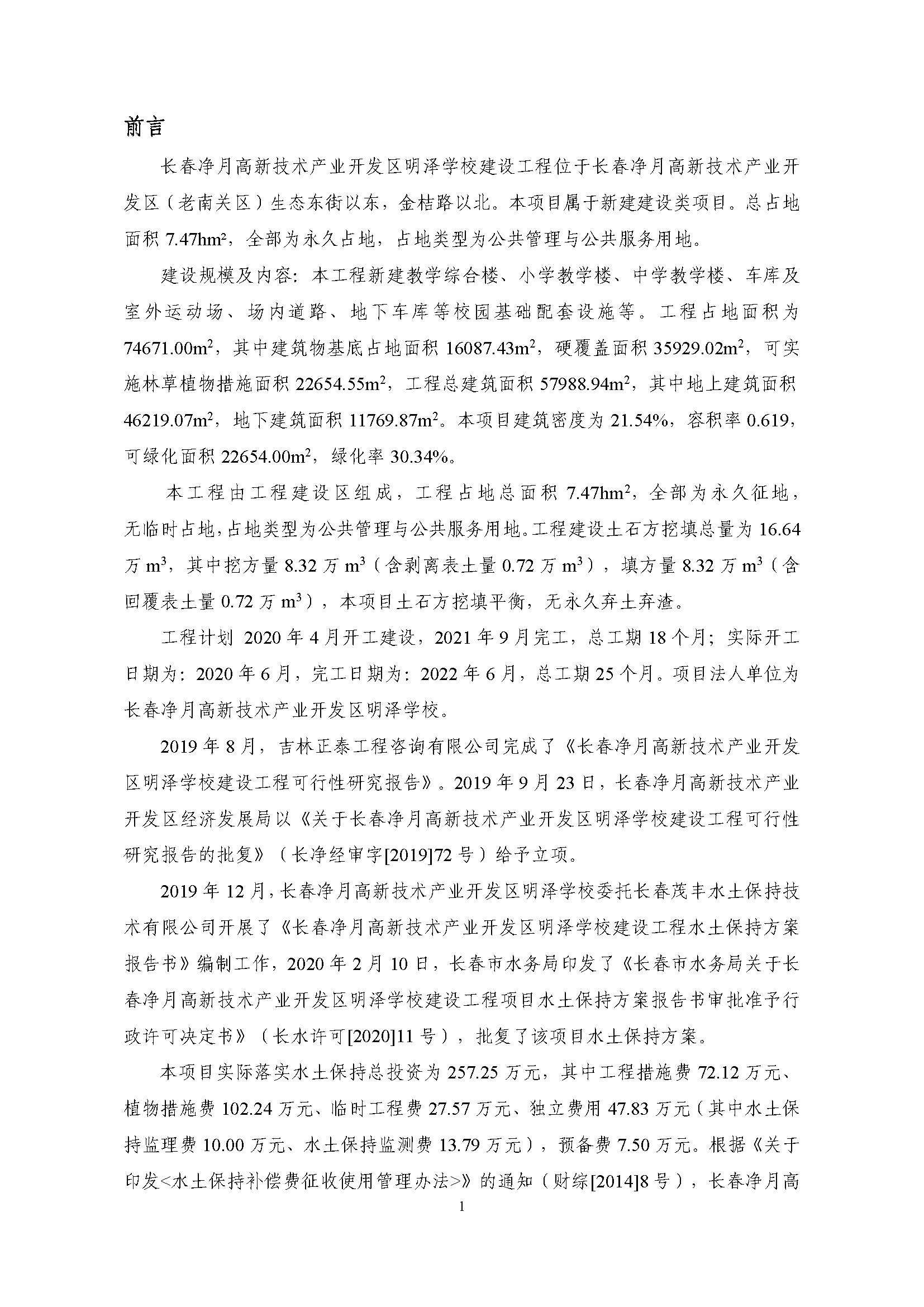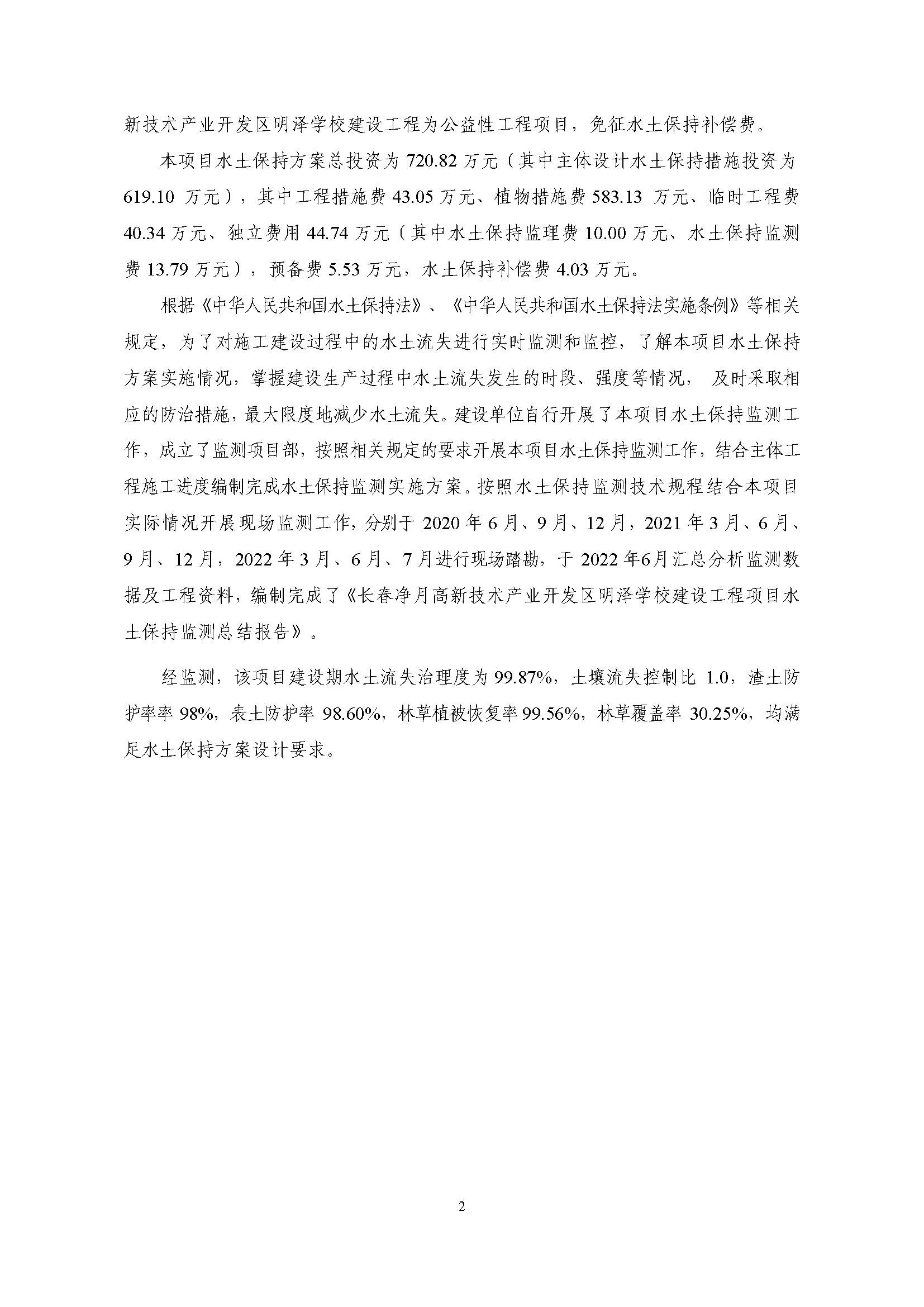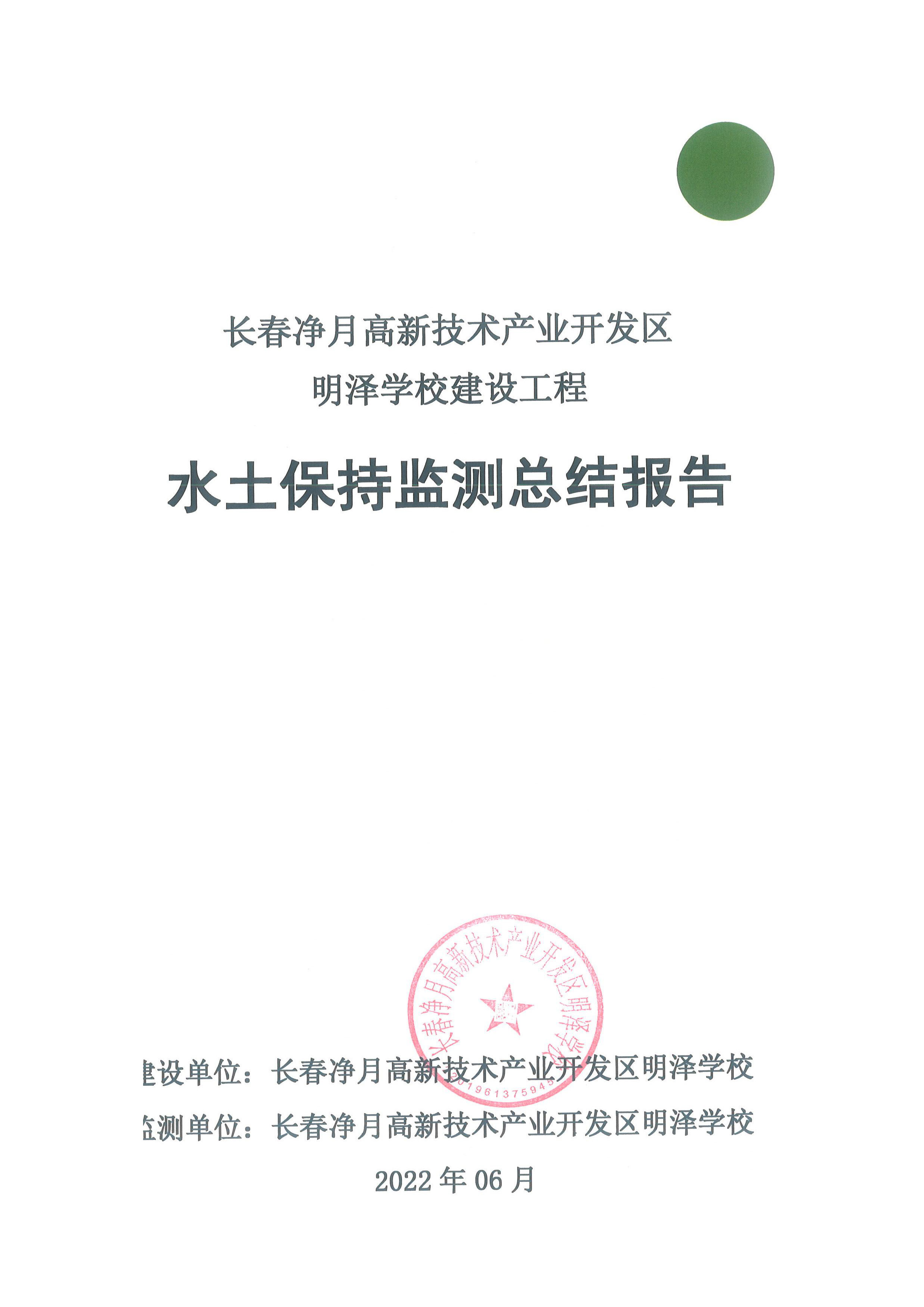 水土保持监测总结报告-长春净月高新技术产业开发区明泽学校建设工程