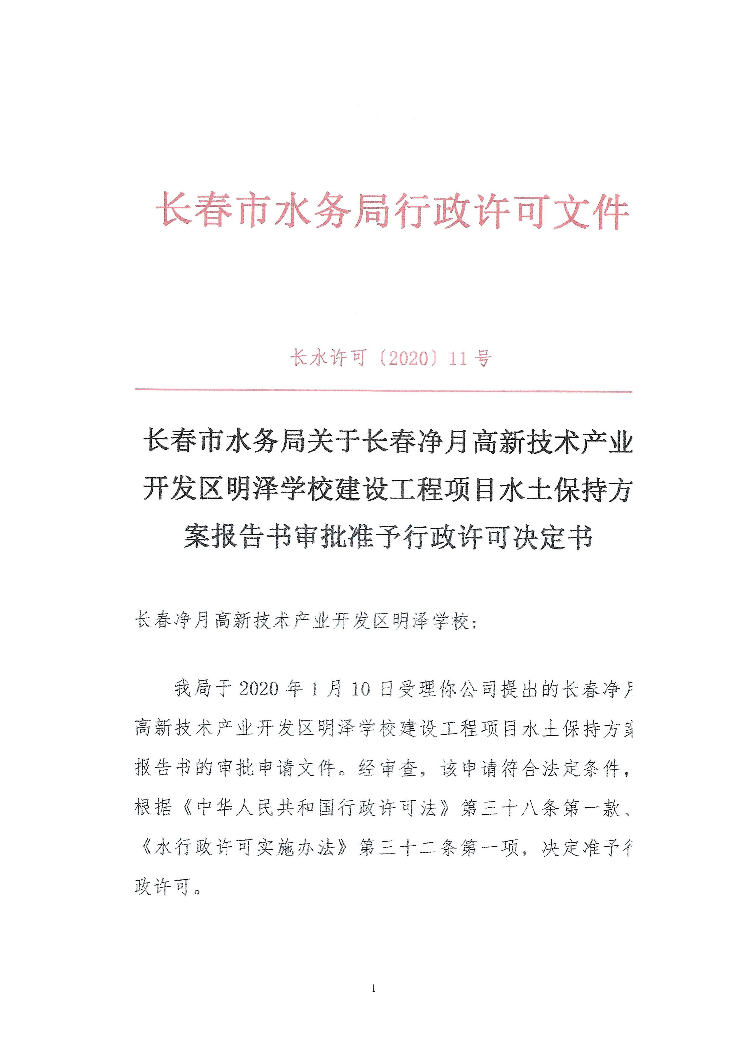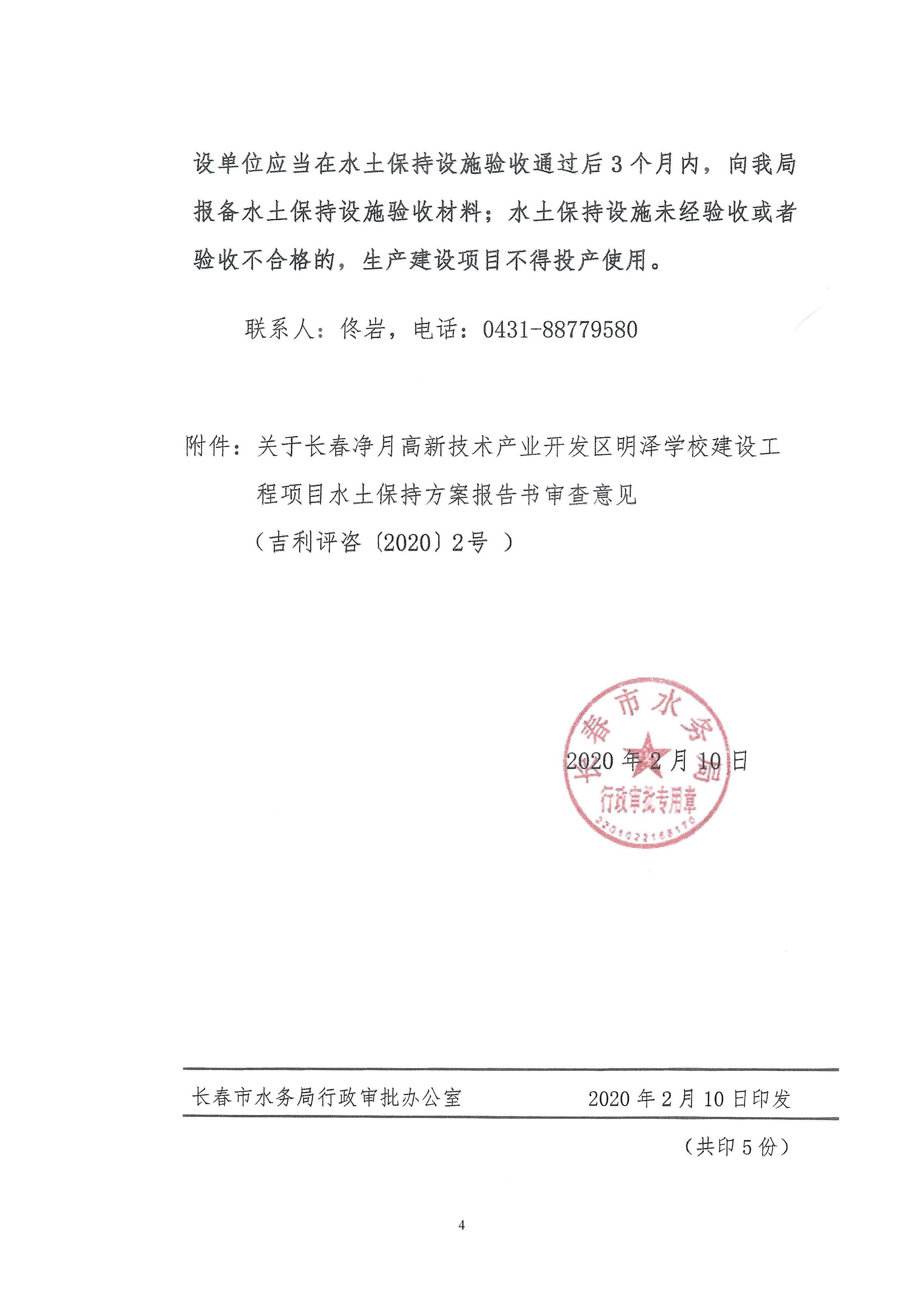 水土保持设施验收报告-长春净月高新技术产业开发区明泽学校建设工程