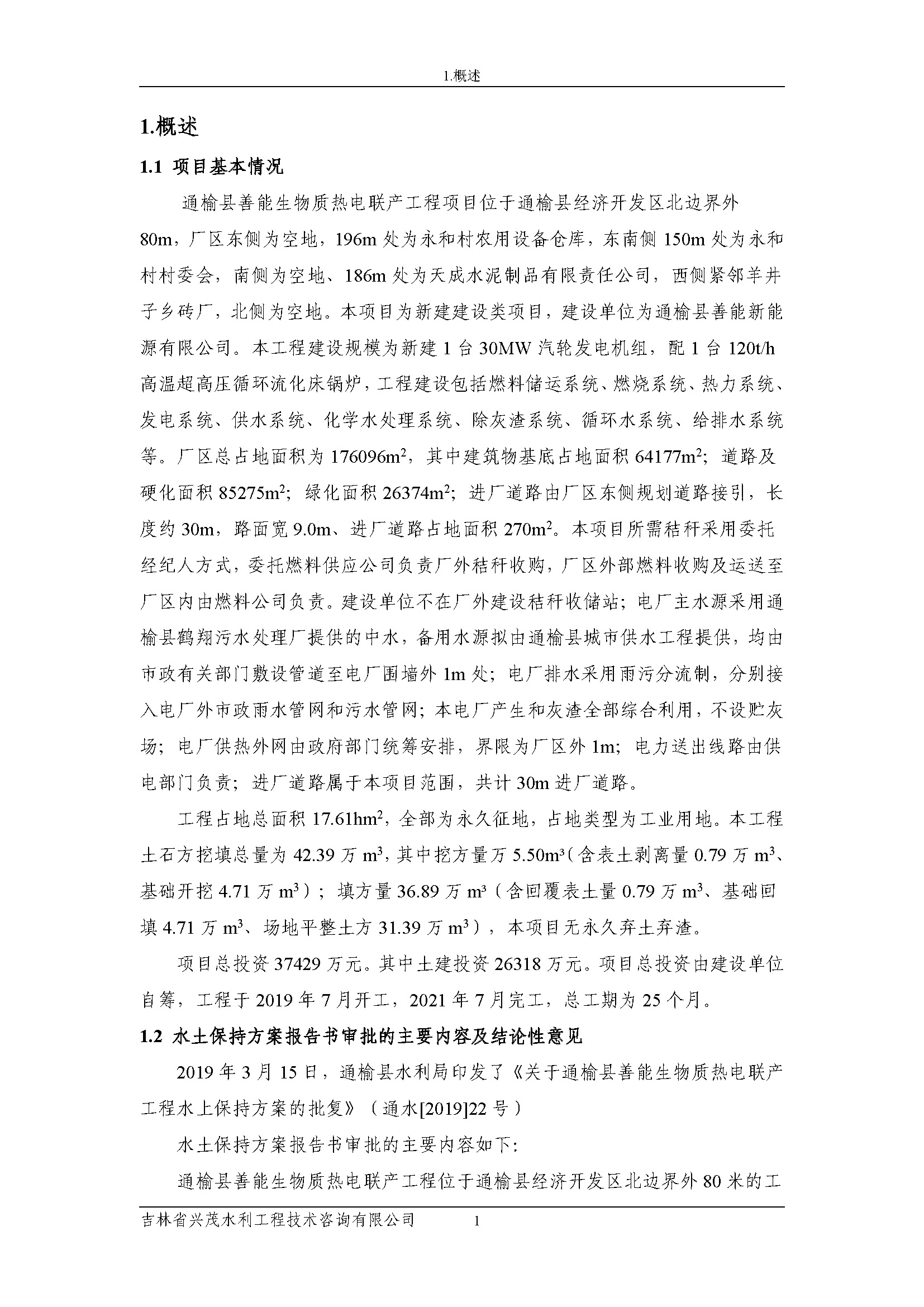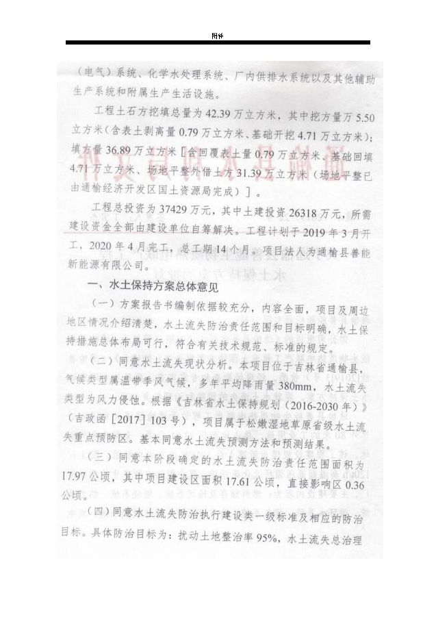 水土保持后续设计公示说明-通榆县善能生物质热电联产工程