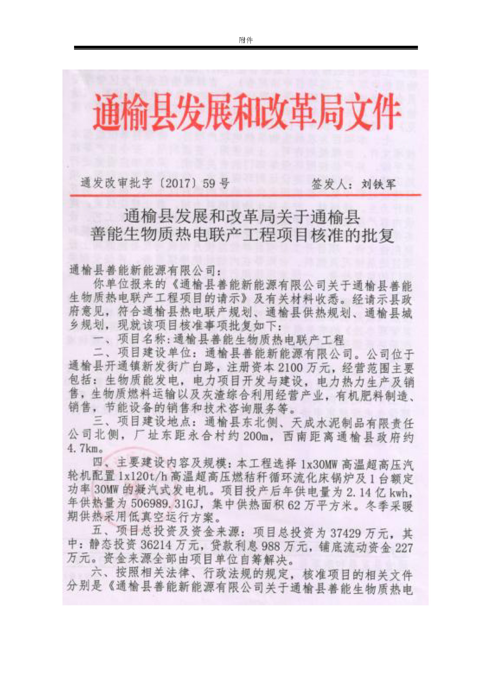 通榆县善能生物质热电联产工程后续设计