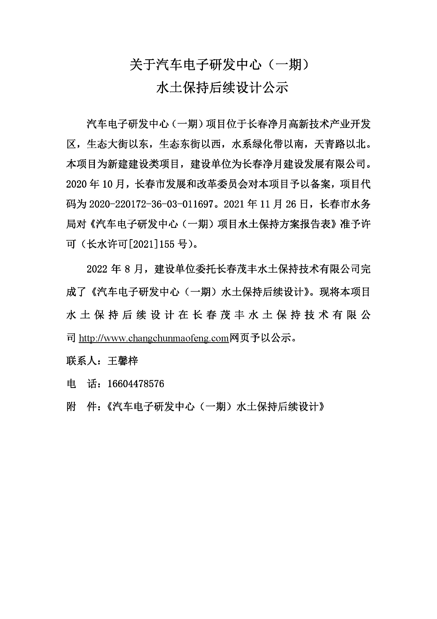 水土保持后续设计公示说明-汽车电子研发中心(一期)