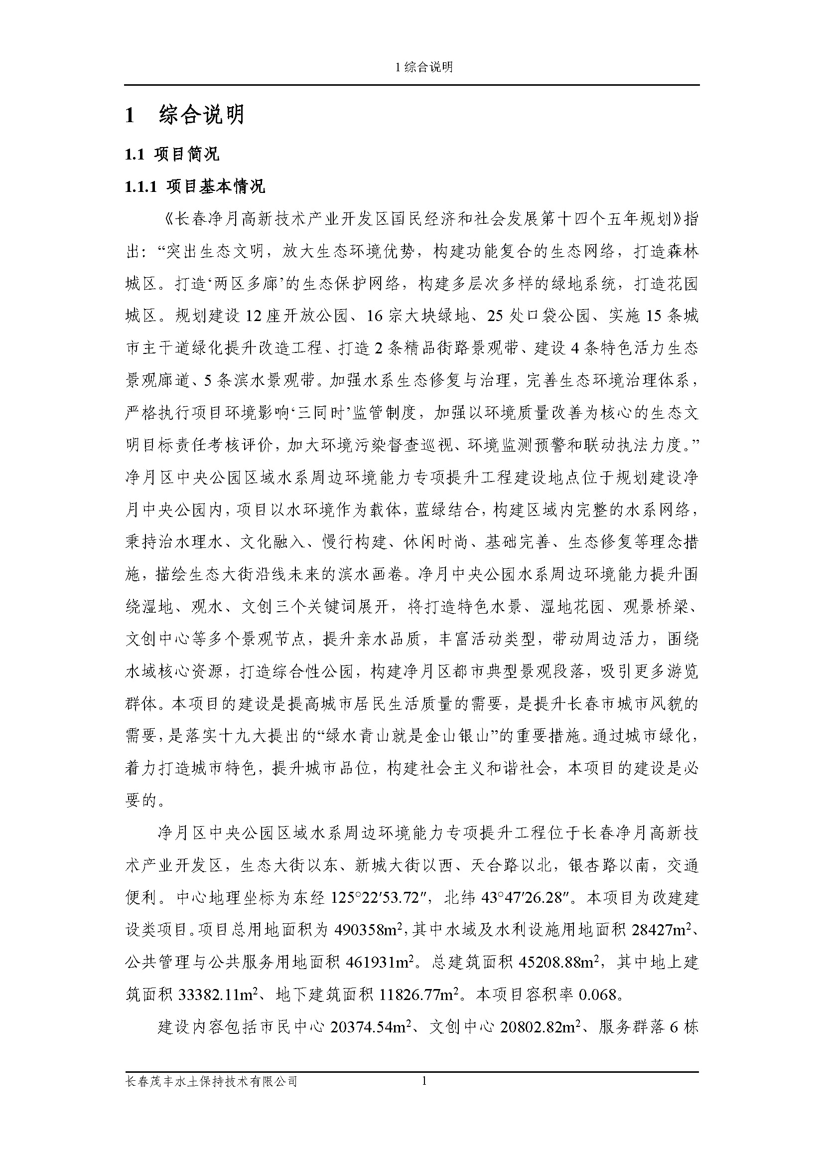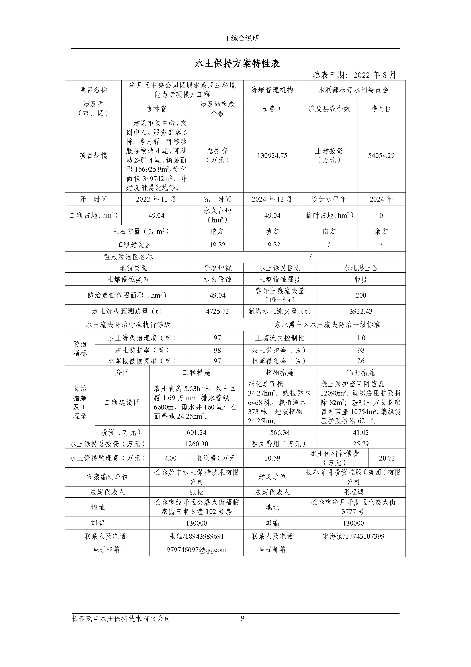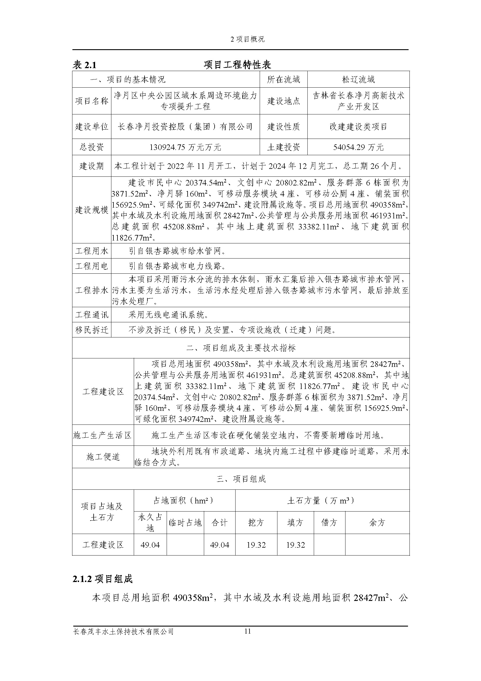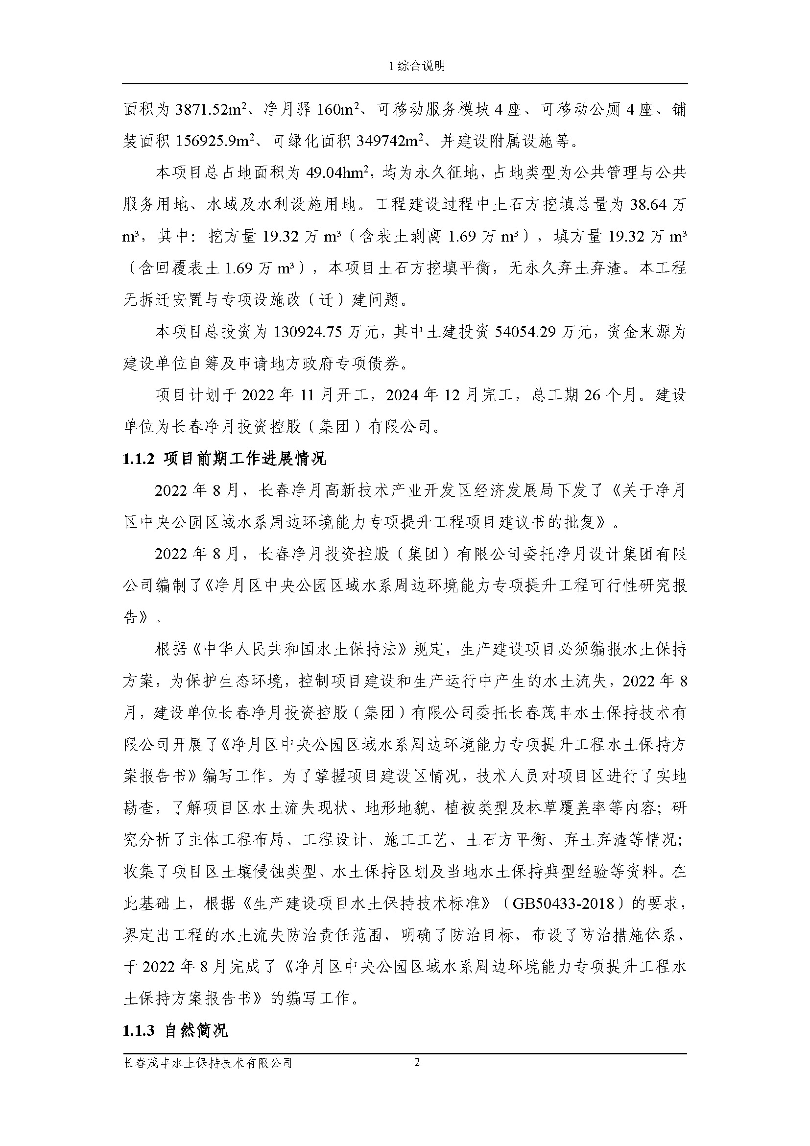 净月区中央公园区域水系周边环境能力专项提升工程水土保持方案报告书