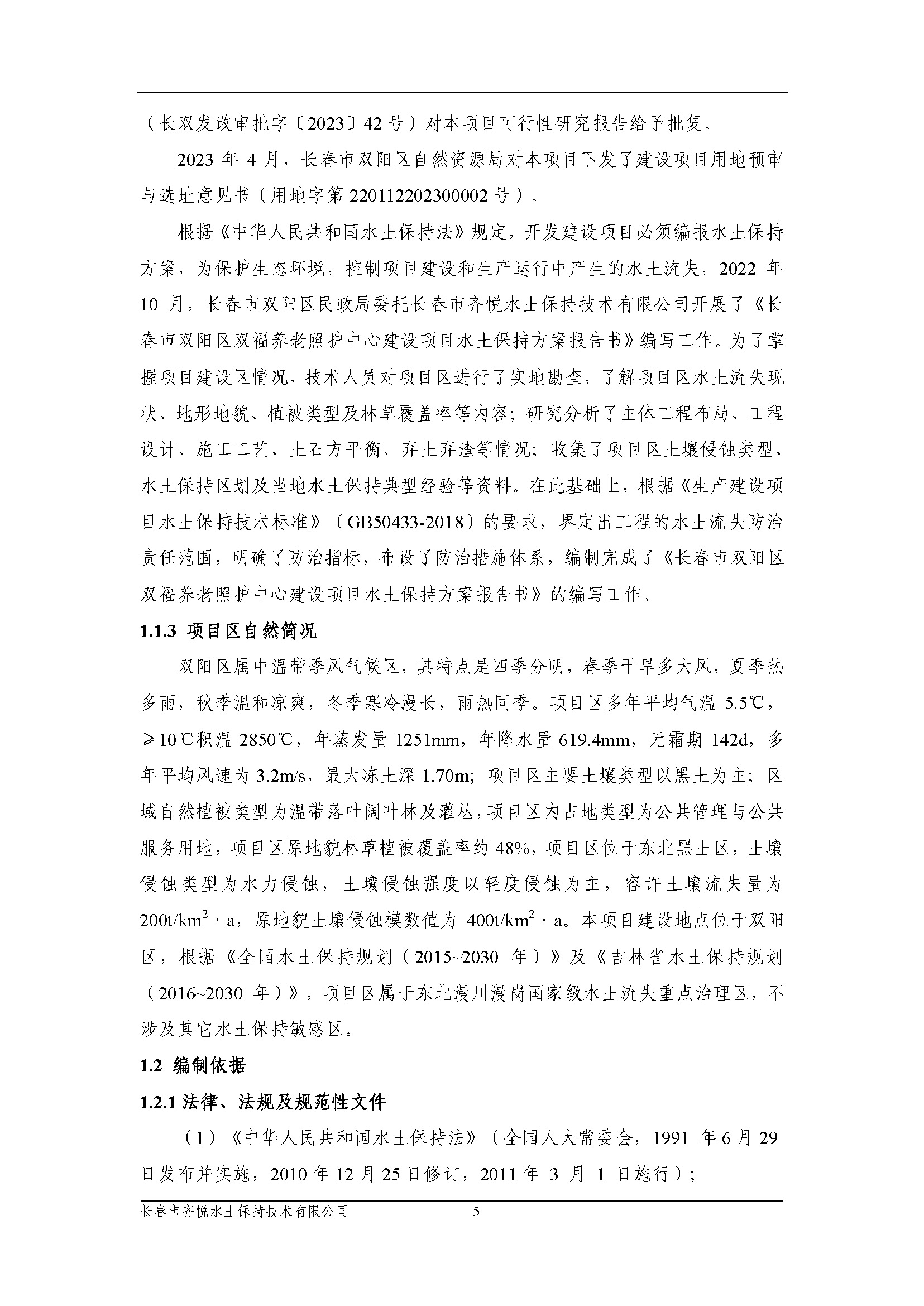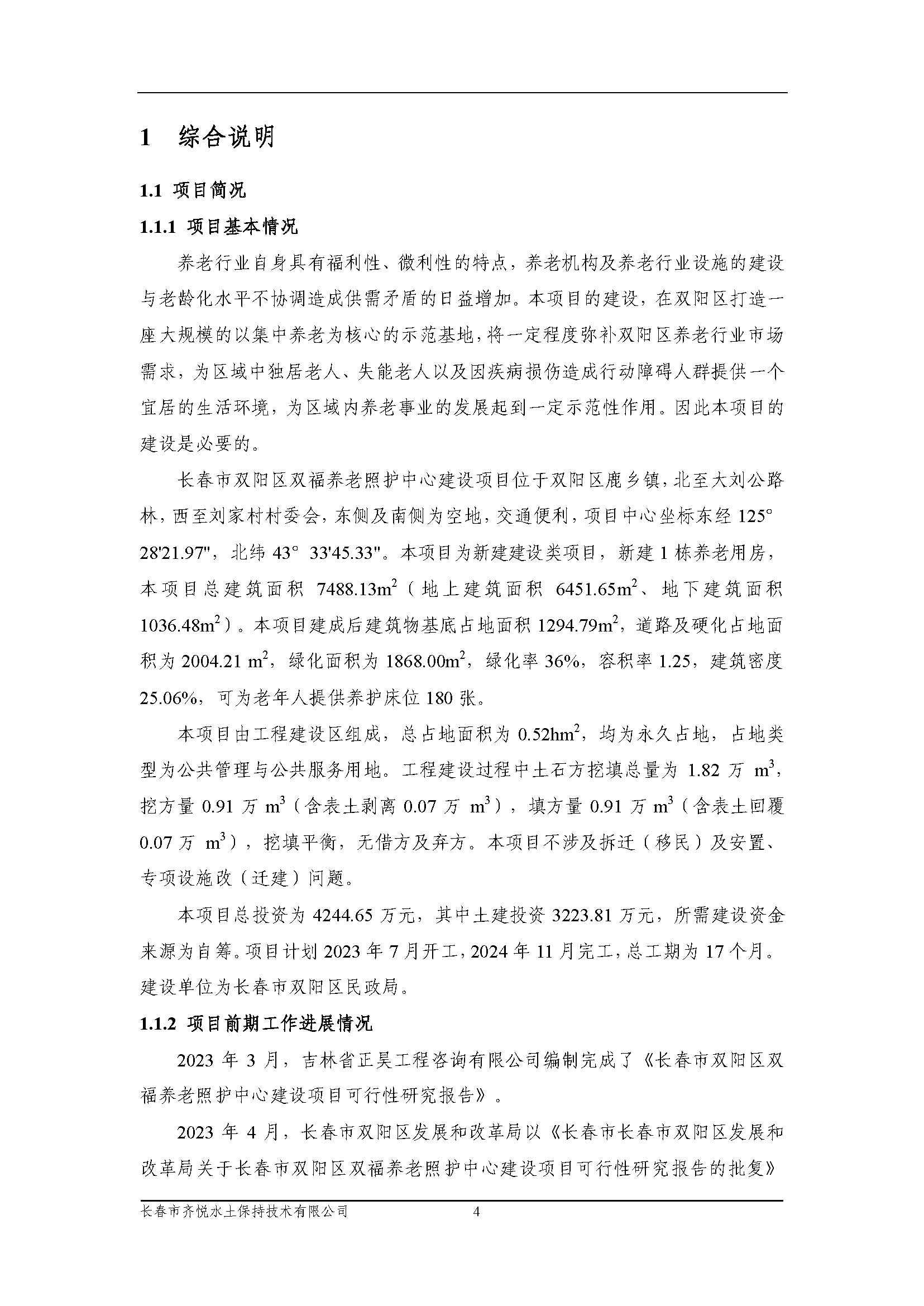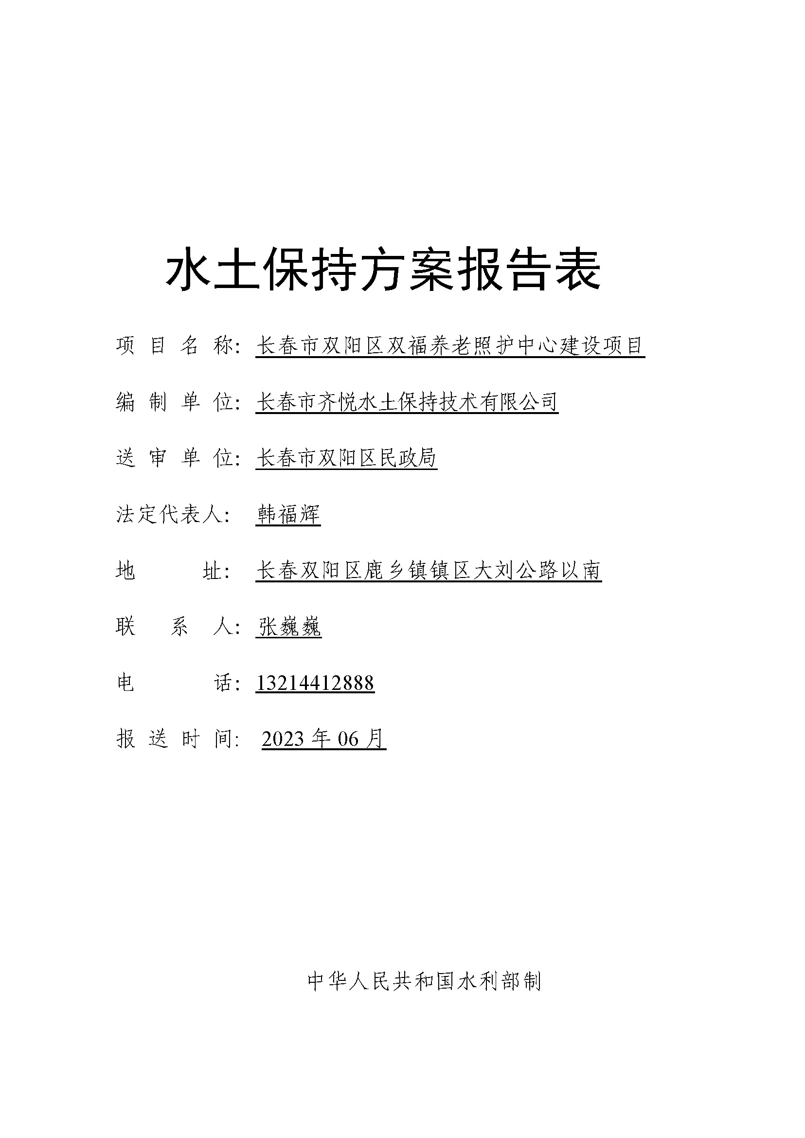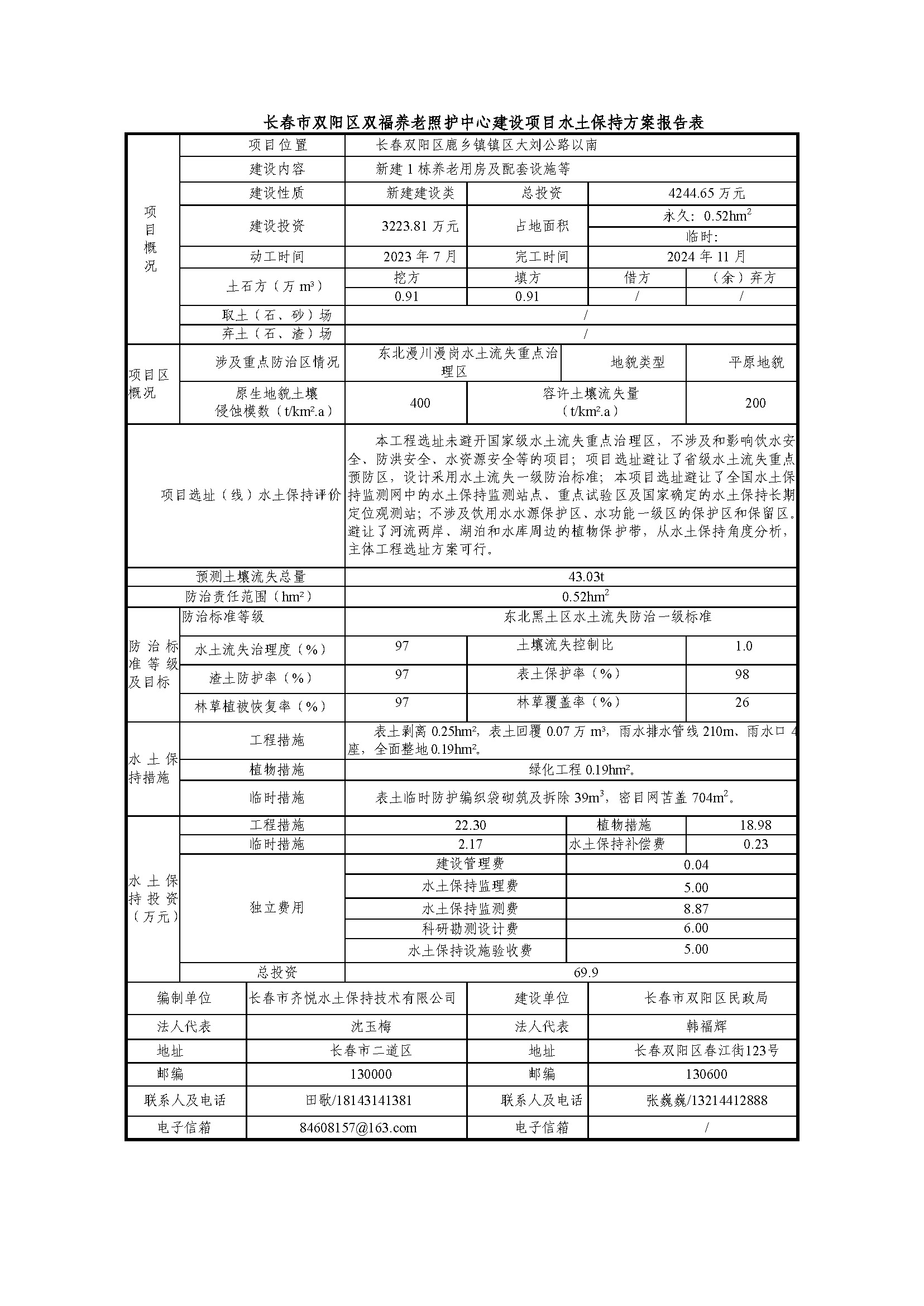 长春市双阳区双福养老照护中心建设项目水土保持方案报告表