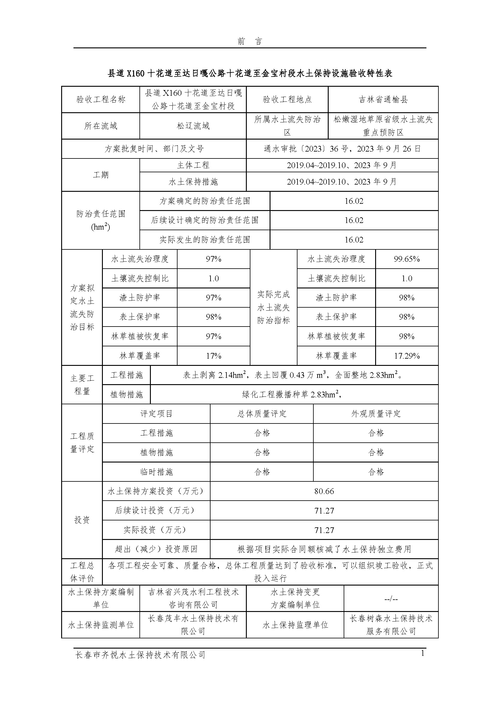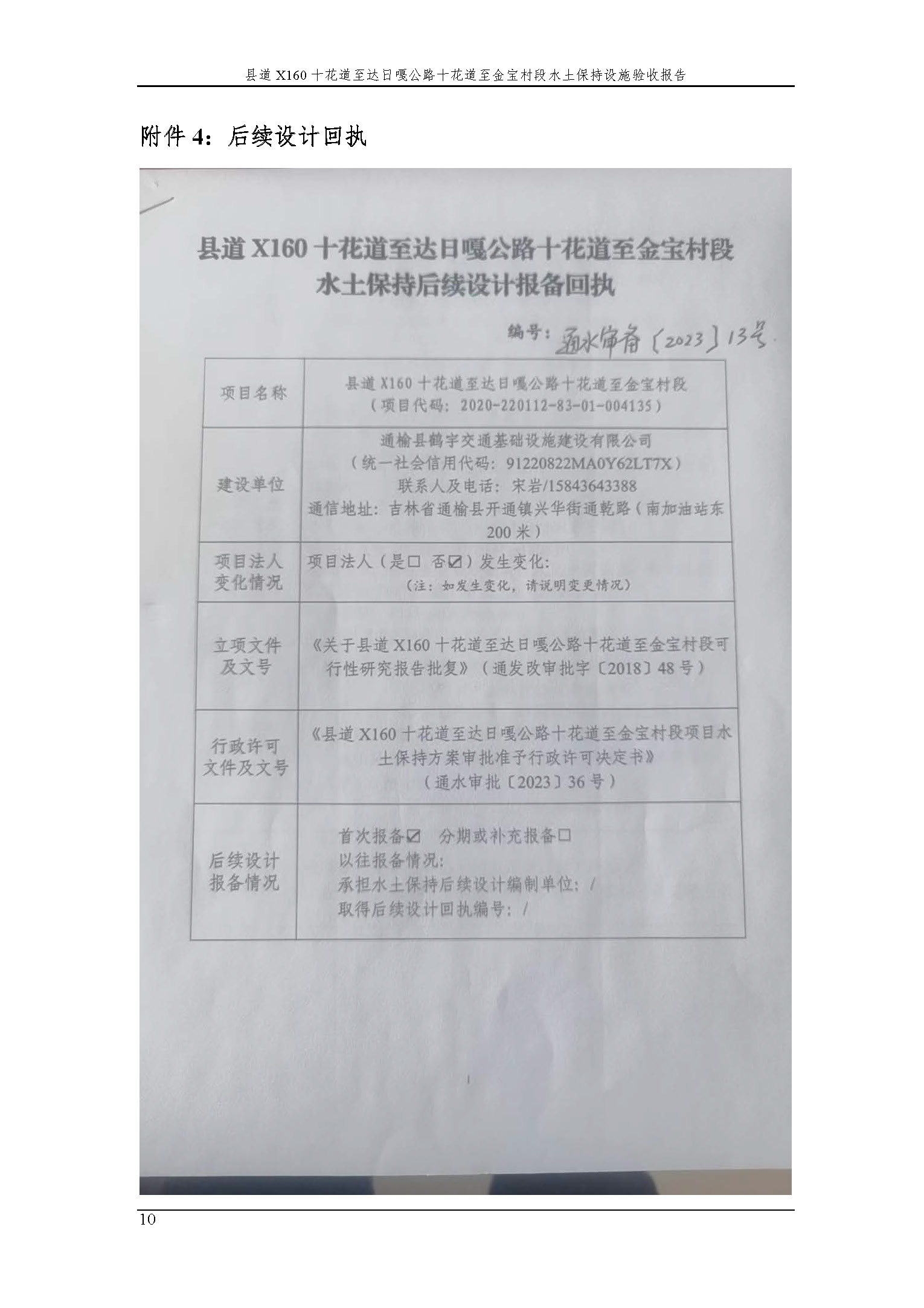 县道X160十花道至达日嘎公路十花道至金宝村段水土保持设施验收报告